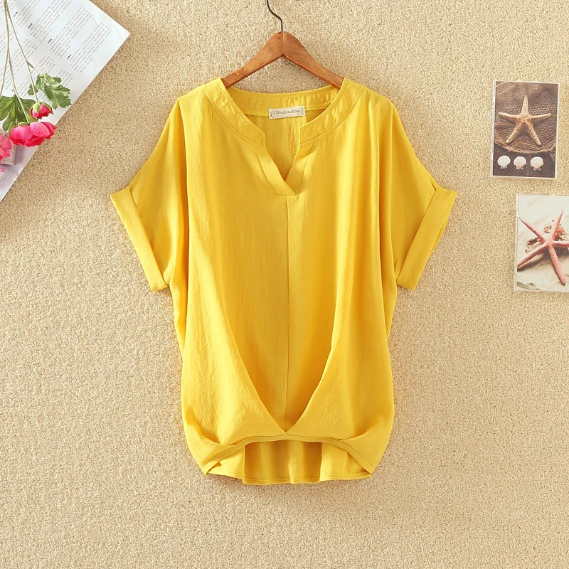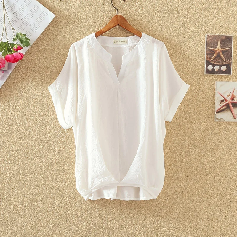 Блузка женская с коротким рукавом, Повседневная белая Свободная рубашка большого размера d, с V-образным вырезом, одежда для размера плюс, лето 2021