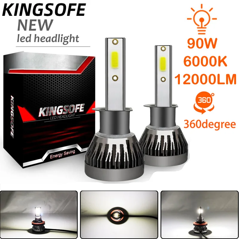 Автомобильные светодиодные лампы Kingsofe, 90 Вт, 12000 лм, H7 светодиодный H1, H11, 9005, 9006, H4 светодиодный H7, 6000K