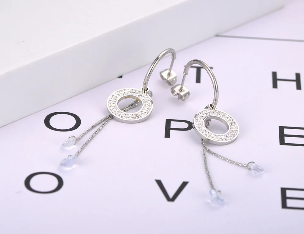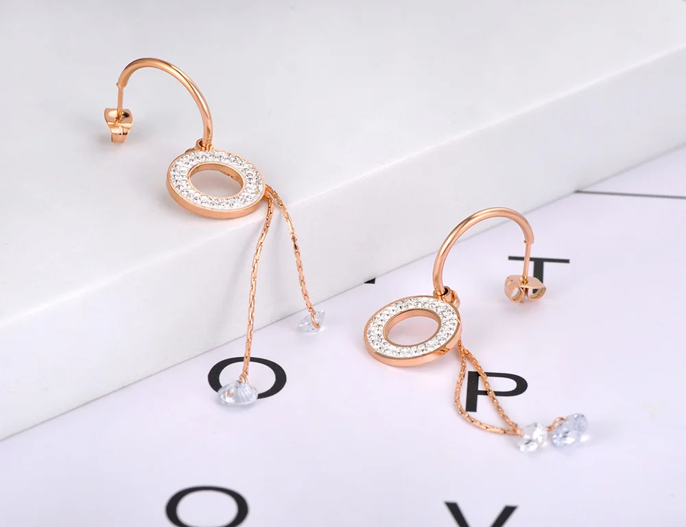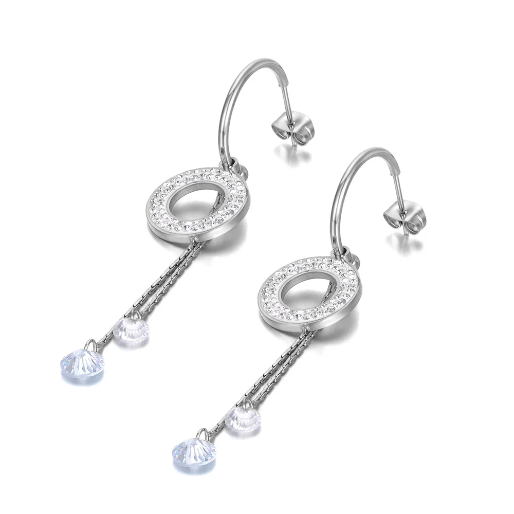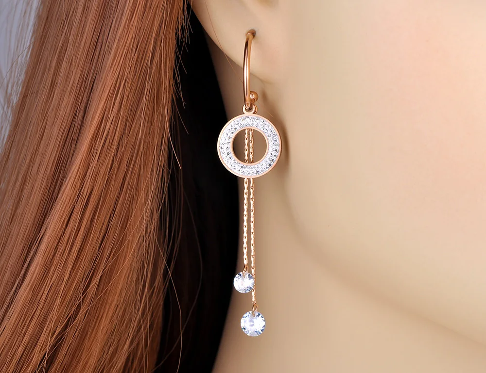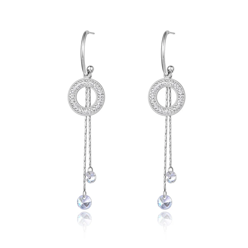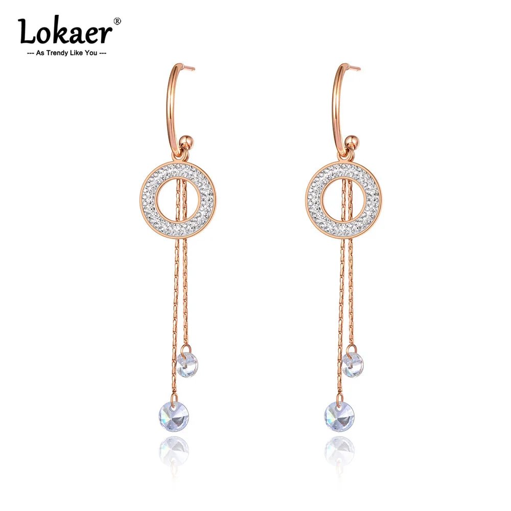 Женские сверкающие серьги Lokaer, из нержавеющей стали, с круглыми кисточками и фианитами, оригинальный дизайн, E21006