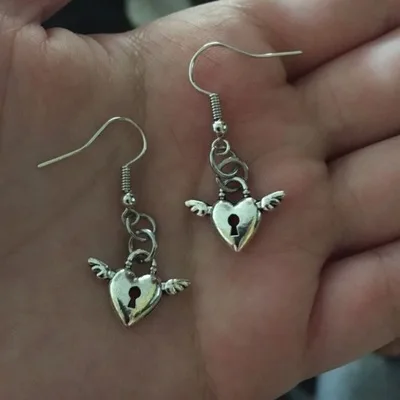 В винтажном стиле, новый дизайн, металлические сердцевидные крылья Висячие серьги для мужчин и женщин модные вечерние ювелирные изделия панк замок очарование серьги-гвоздики для свадьбы