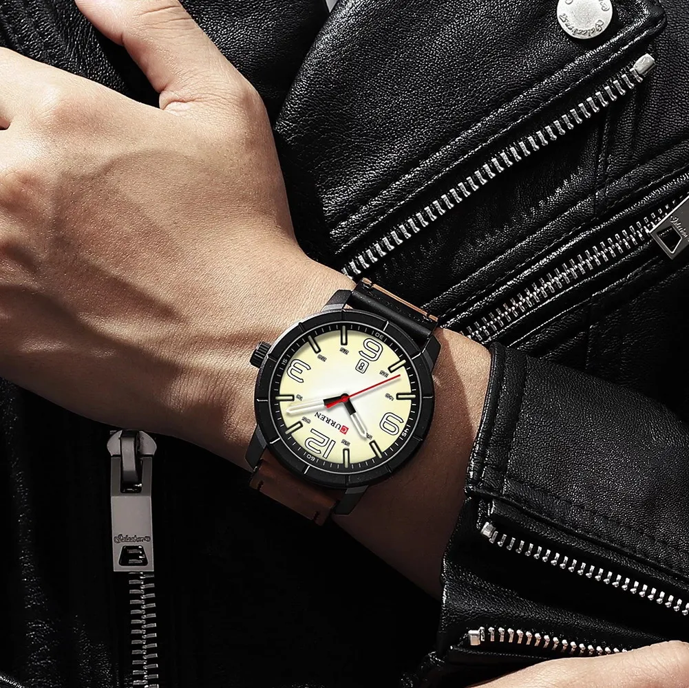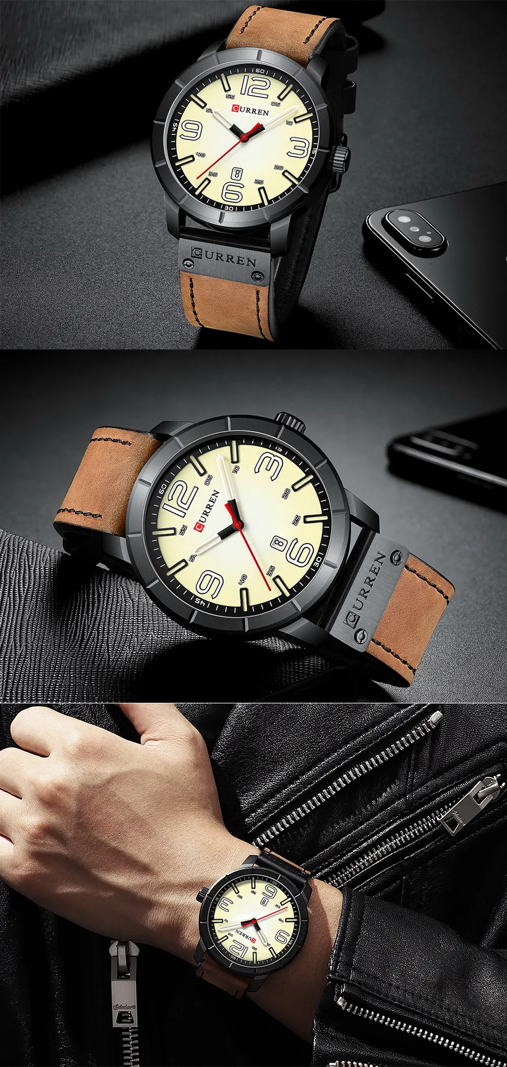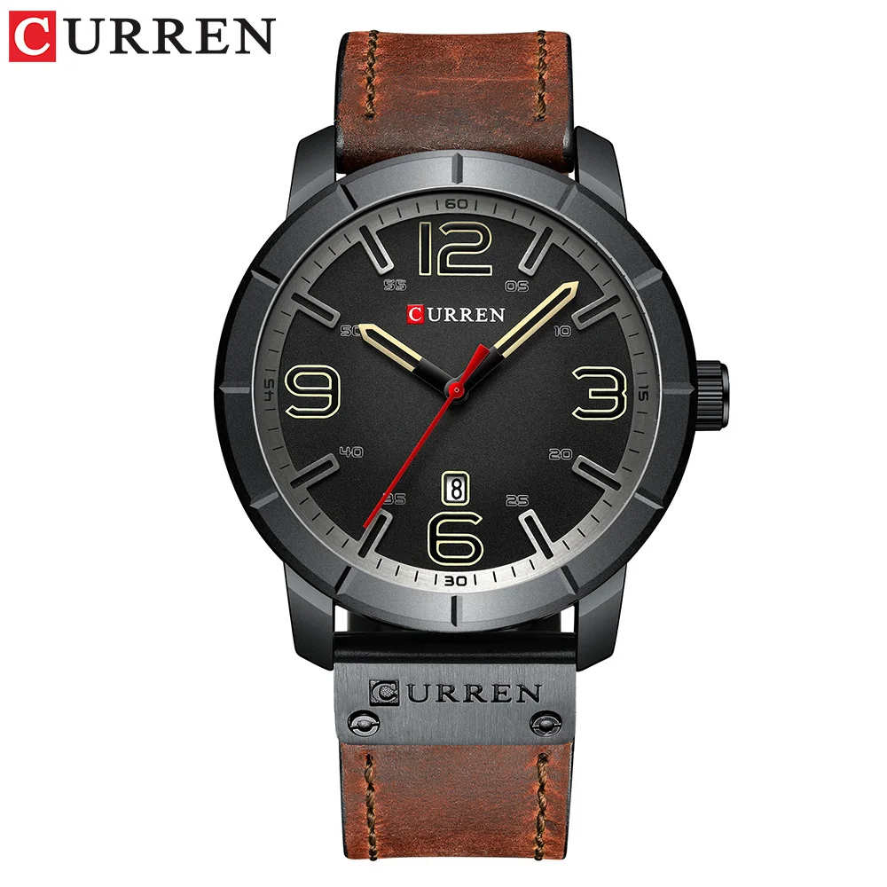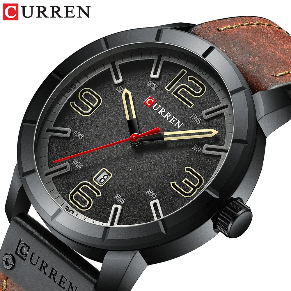 Часы CURREN Мужские кварцевые аналоговые, классические водонепроницаемые, с кожаным ремешком, в стиле милитари, с датой