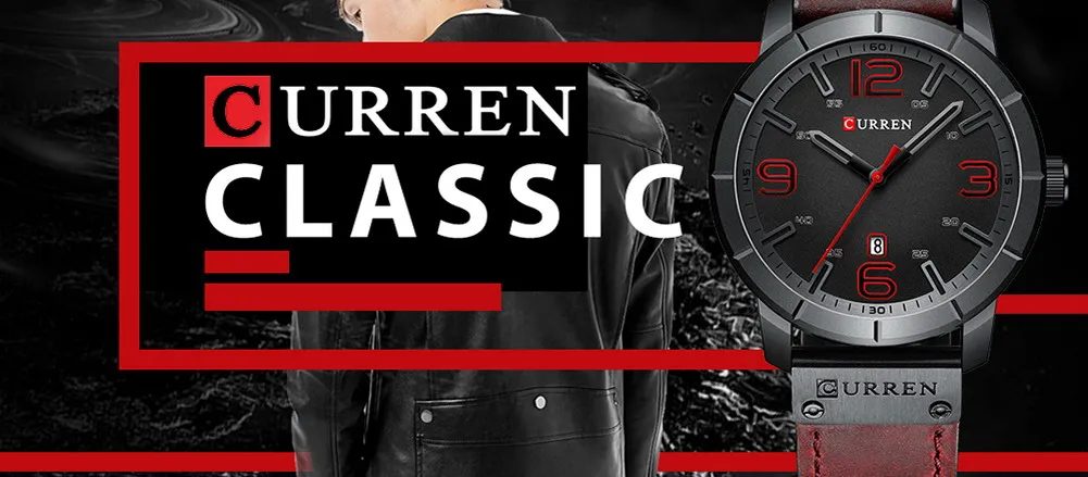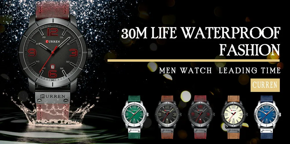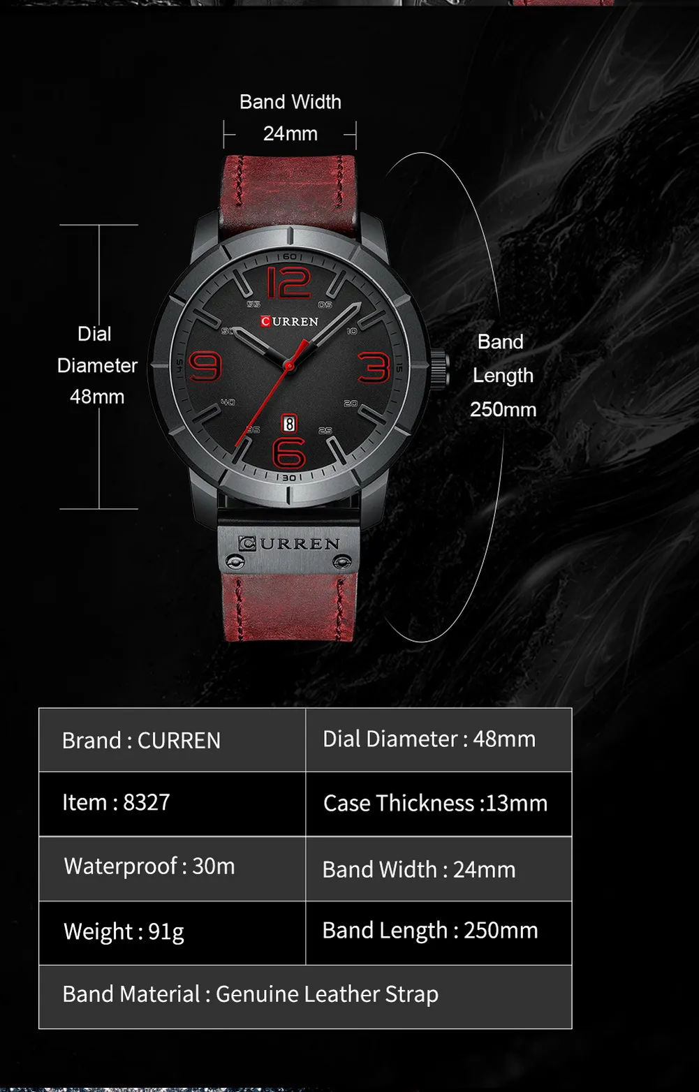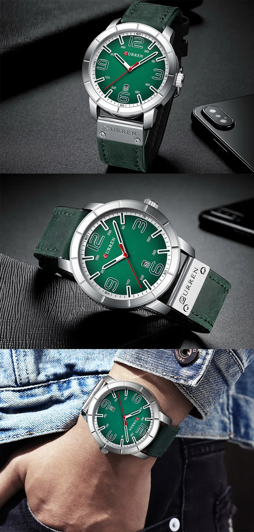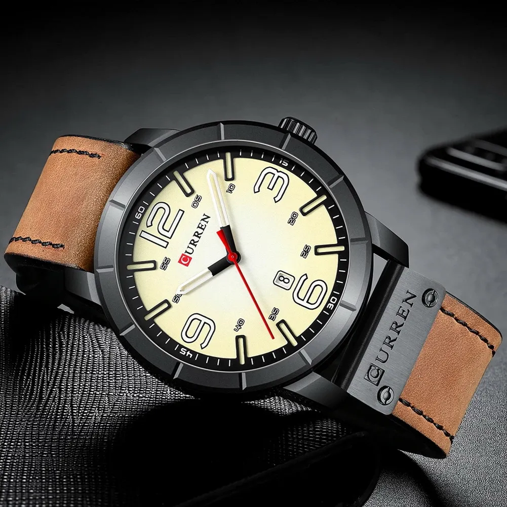 Часы CURREN Мужские кварцевые аналоговые, классические водонепроницаемые, с кожаным ремешком, в стиле милитари, с датой