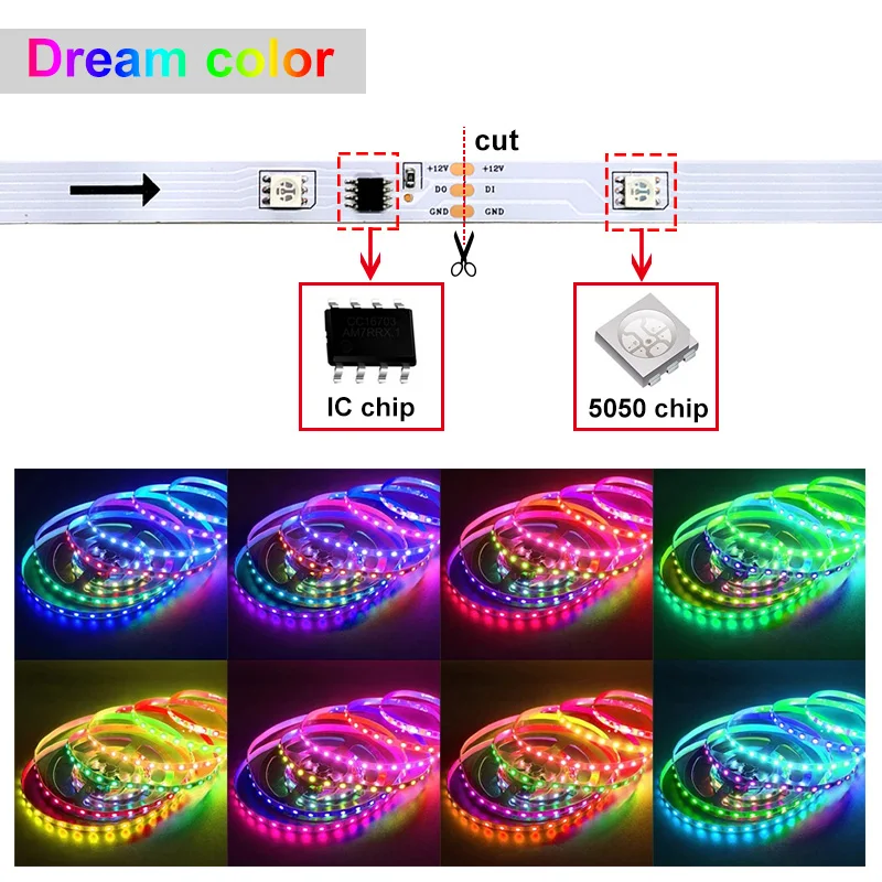 Светодиодная лента WS2811, Гибкая RGB-полоска мягкого цвета SMD 5050 с индивидуальным управлением светодиодами, 12 В постоянного тока