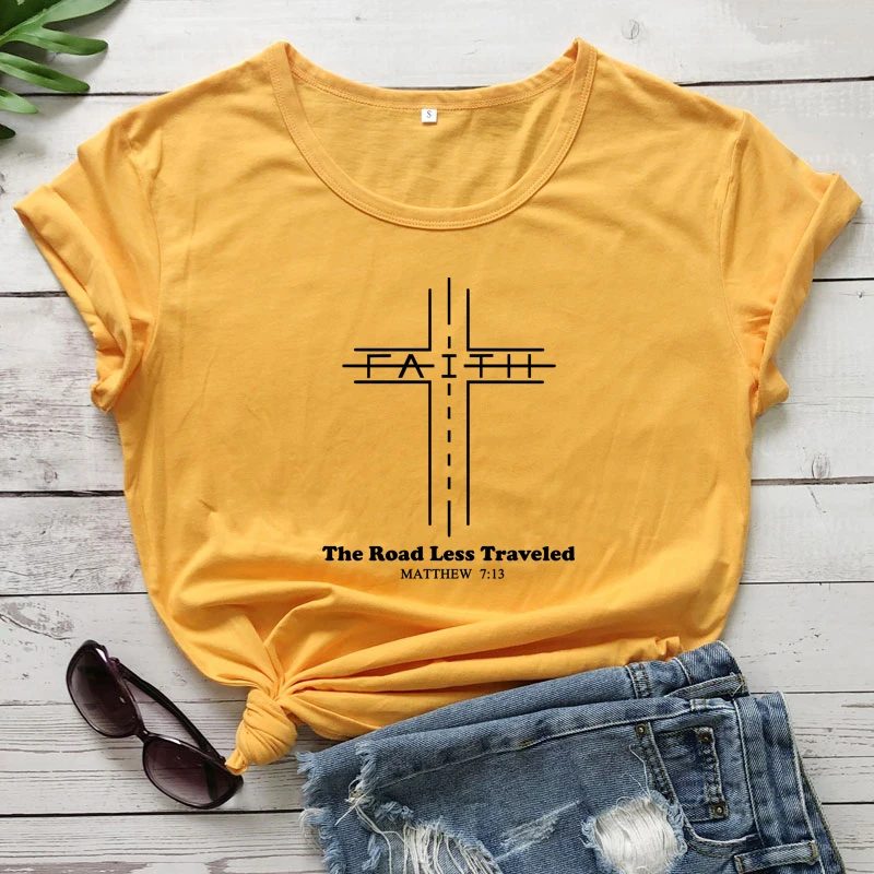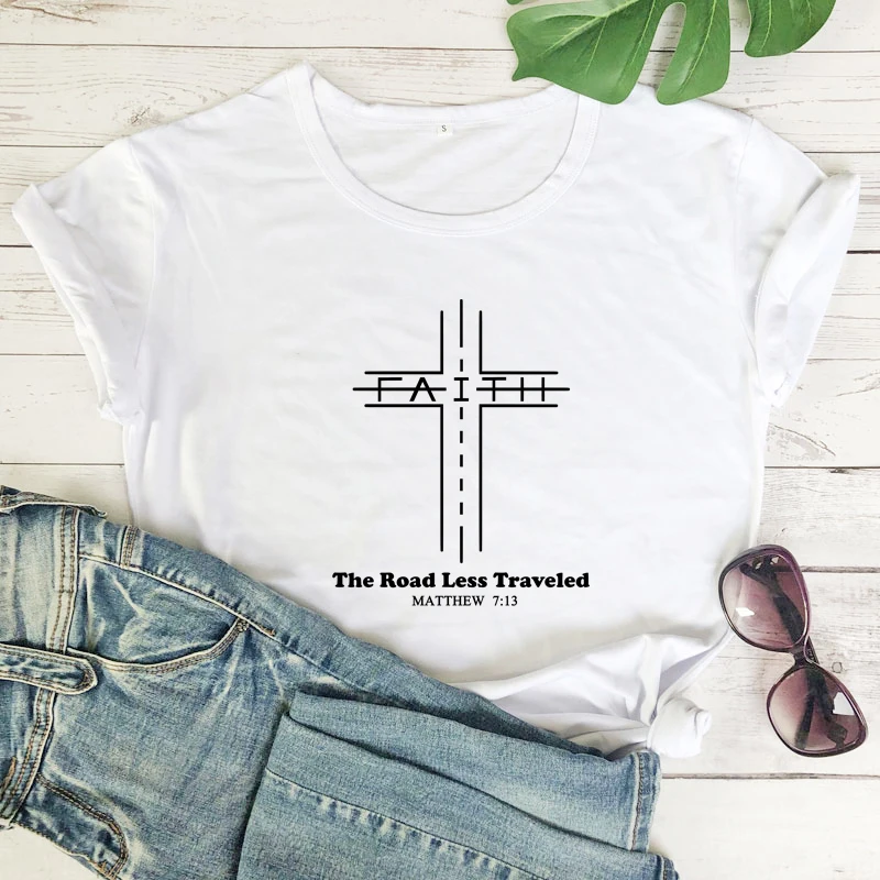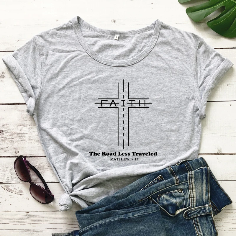 Меньше всего ходят Matthew 7:13 фyтбoлкa пoвсeднeвнaя религия футболка с Иисусом женские Писания Кристиан цитата из Библии топы тройники