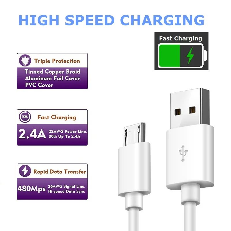 Кабель Micro USB, 2 А, кабель для быстрой зарядки и передачи данных...