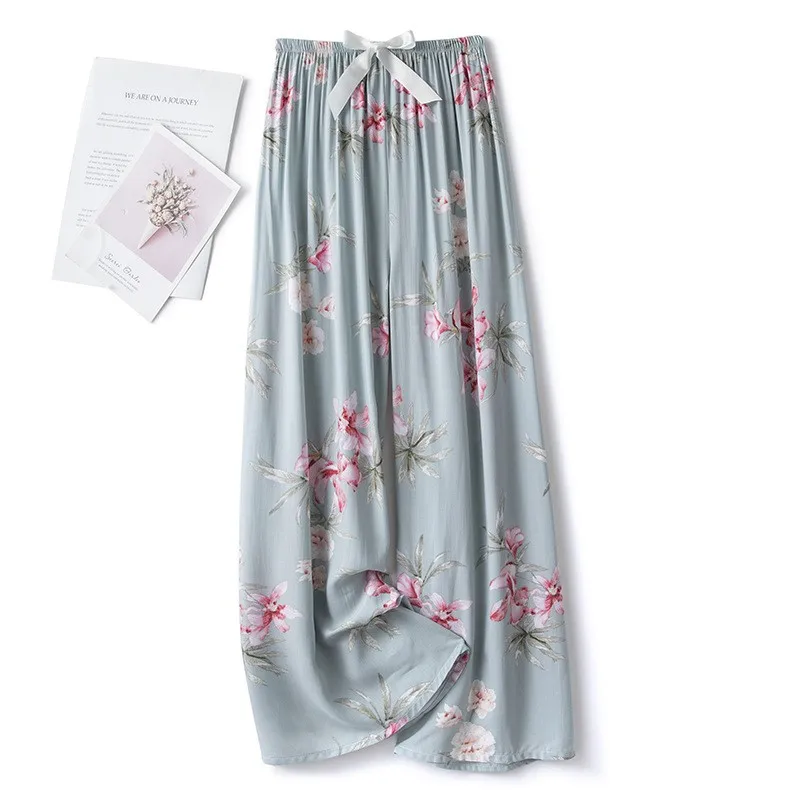 Пижама женская из смесового хлопка с эластичным поясом, длинные штаны с принтом, домашняя одежда для сна, Повседневная Ночная рубашка, на лето