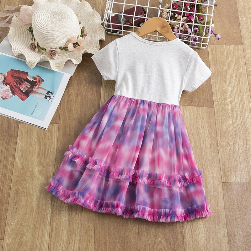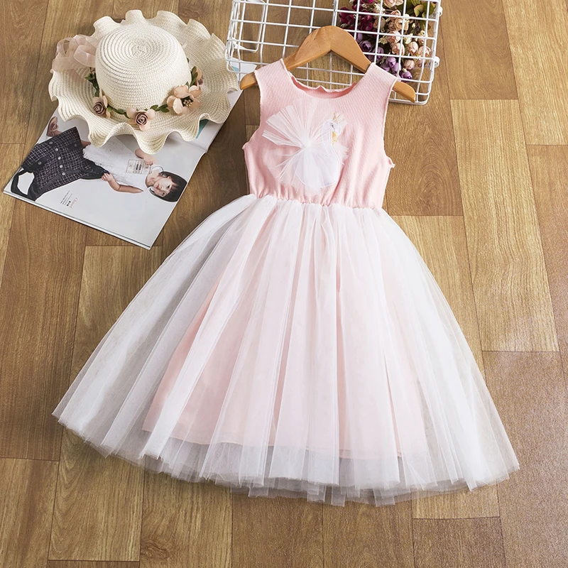 Платье принцессы для девочек с белым лебедем, летние фатиновые плат...