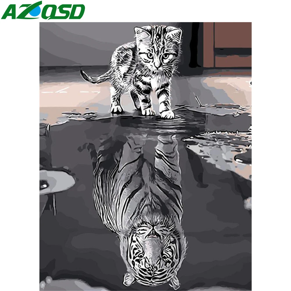 AZQSD рамки алмазов картина по номерам тигр рисунок на холсте по номерам DIY картина по номерам для взрослых животных Наборы Современные Настенные произведения искусства