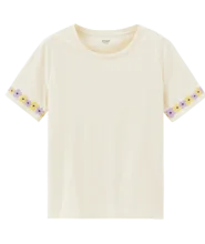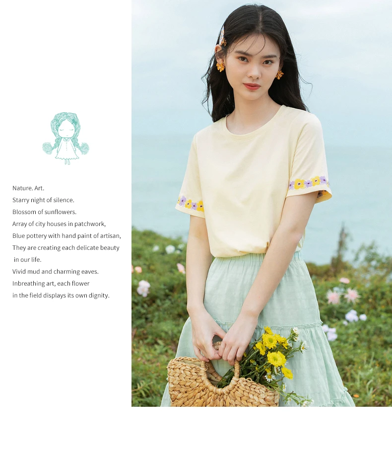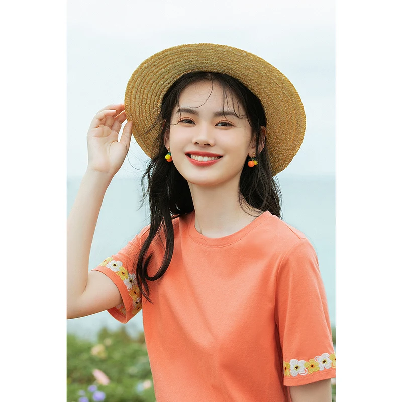 Летняя трикотажная футболка с круглым вырезом, вышивкой клубники, о...