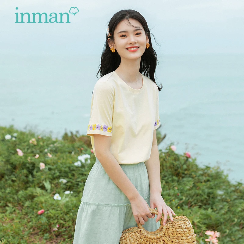 INMAN летняя свободная футболка с круглым вырезом и коротким рукавом
