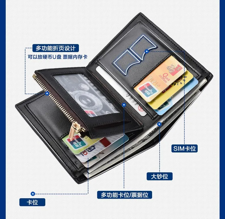 Мужской кошелек из искусственной кожи, деловой бумажник с нескольки...