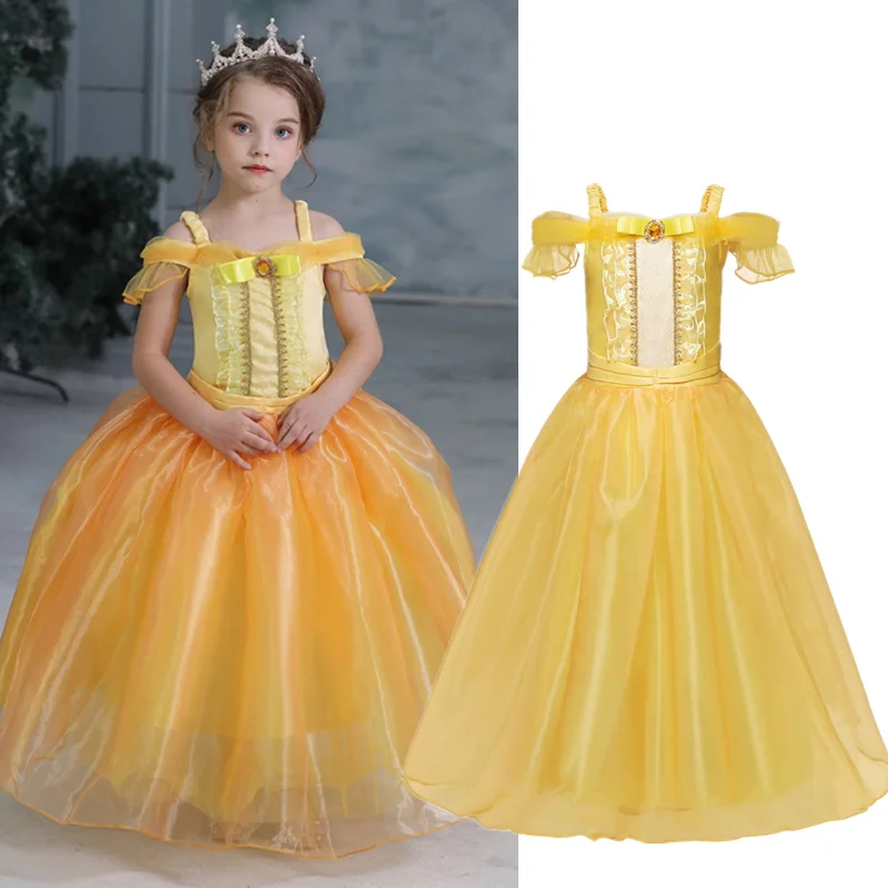 Платья На Хэллоуин для девочек, костюм Белль для косплея для детей, карнавальный маскарадный костюм красавицы и чудовища, детская Золотая одежда, Халат
