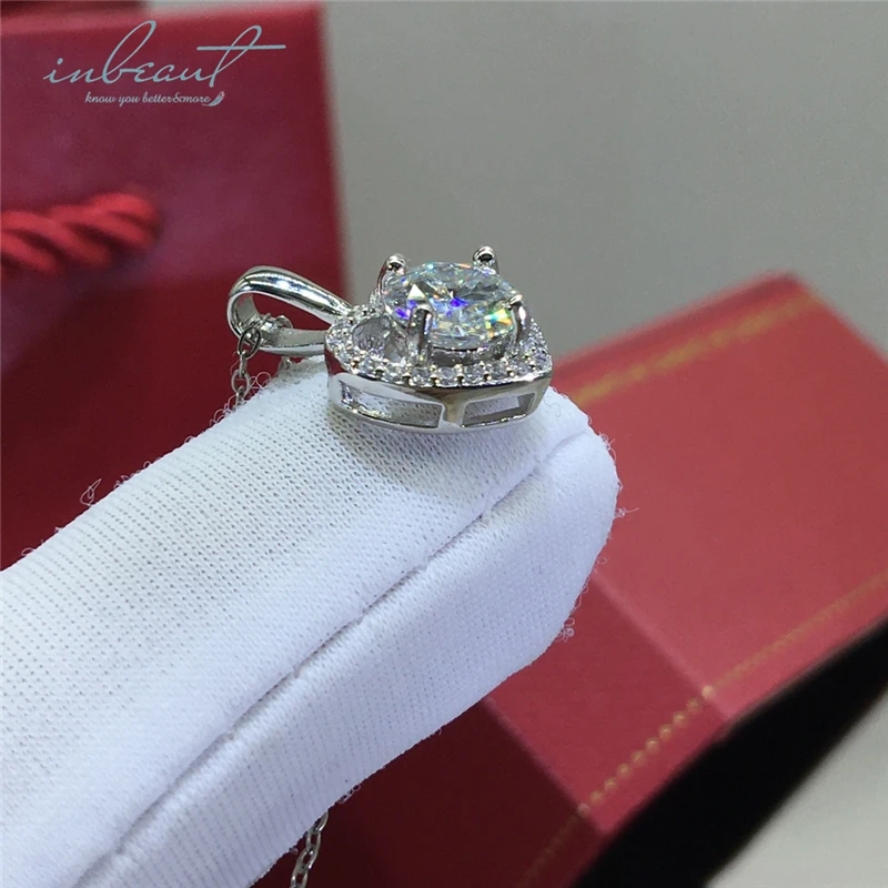 Inbeaut любовь навсегда сердце Муассанит кулон ожерелье 925 серебро отличный крой 1 компьютерная томография D Цвет пройти Diamond тесты Муассанит цепи