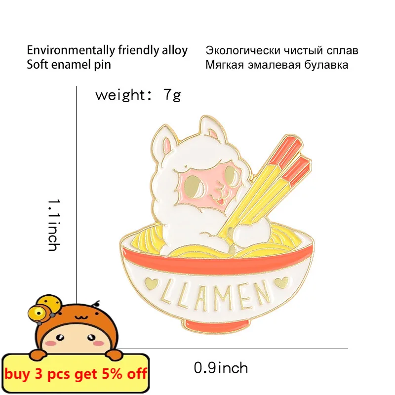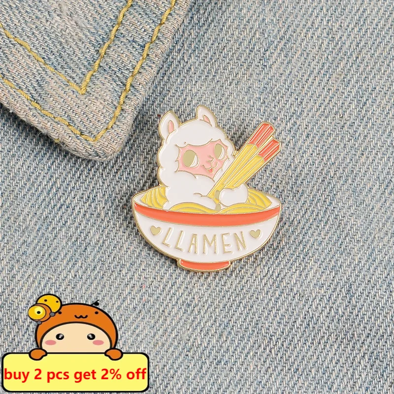 Эмалированные булавки в форме рамен, милые Мультяшные японские лапши, лама, альпака, броши, джинсовая рубашка, воротник, лацкан, булавка, значок, ювелирные изделия, подарки