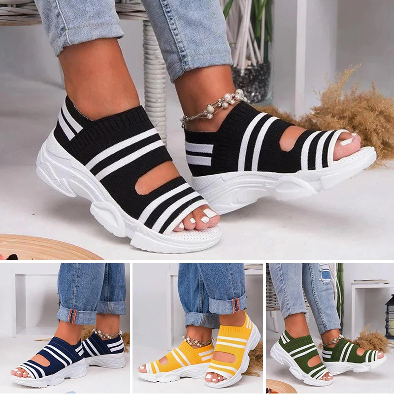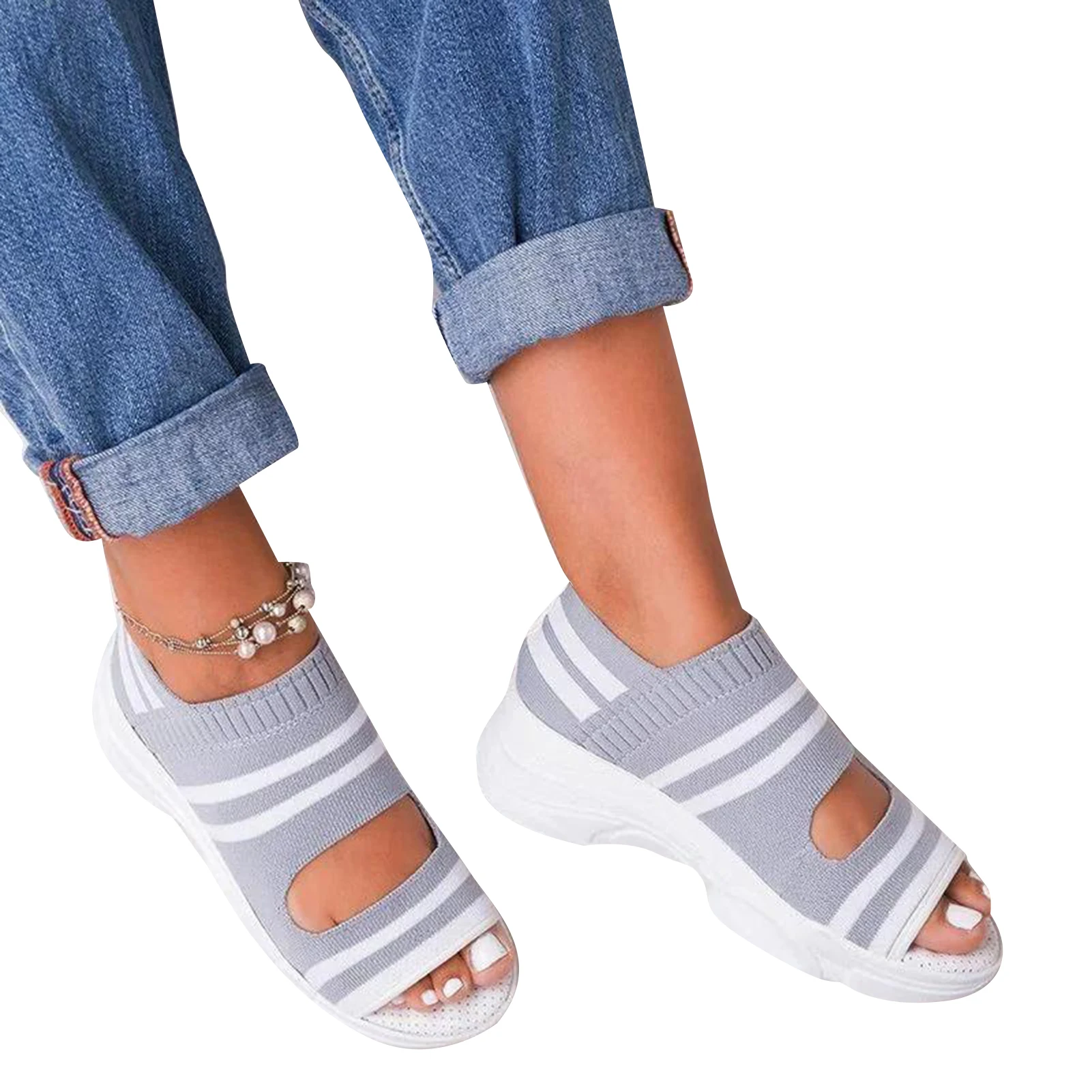 Повседневные плетеные удобные сандалии на танкетке с открытым носком для женщин Летняя Уличная обувь с утолщенной подошвой A66