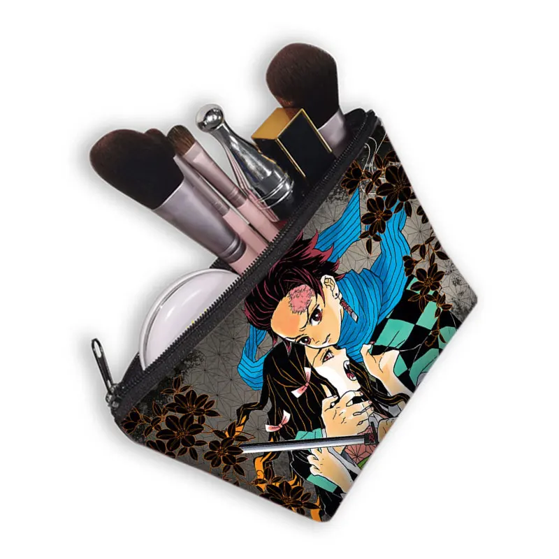Косметичка для женщин, сумочка для косметики в стиле аниме Demon Slayer Kimetsu No Yaiba, косметичка для девушек, маленький клатч
