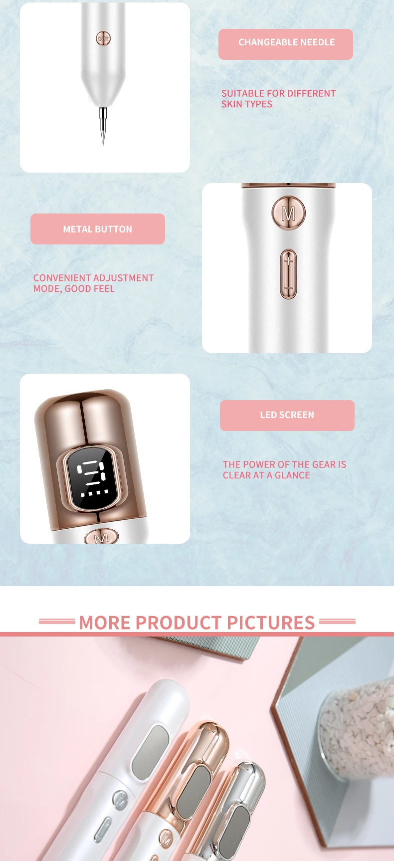 Параметры:Время зарядки: 2 часаМатериал изделия: абс + ПКНапряжение зарядки: 5 ВРазмер продукта: 190 × 2x2 ммВыходная мощность: 4 Вт Инструкции:1. После полной зарядки устройства нажмите кнопку ВКЛ и удерживайте в течение 3 секунд, чтобы запустить его.2. 9 передач, нажмите 1 секунду, чтобы переключить передачу, выберите подходящую передачу3. Нажмите кнопку OUT, чтобы использовать продукт и Используйте ватный тампон, чтобы удалить остатки кожи Посылка тация:1 шт. * точечный маркер2 сумки * аксессуары1 шт. * USB-кабель для зарядки1 шт. * Руководство Особенности:Безопасно: удаляет пятна, не обжигая кожу. Использование высокотехнологичных функций карбонизации электрических ионов для мгновенного подметания веснушек, возрастных пятен и т. д. удаление достигается быстро без кровотечений, безопасных и побочных эффектов медицинских косметических результатов.