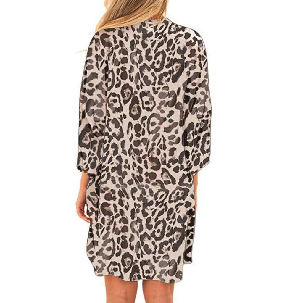 Женская Повседневная Блузка с леопардовым принтом, топы, кимоно, бикини, кардиган, накидка