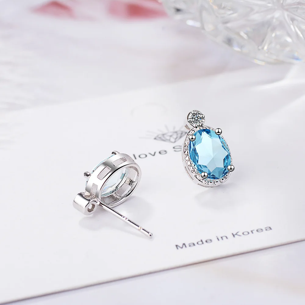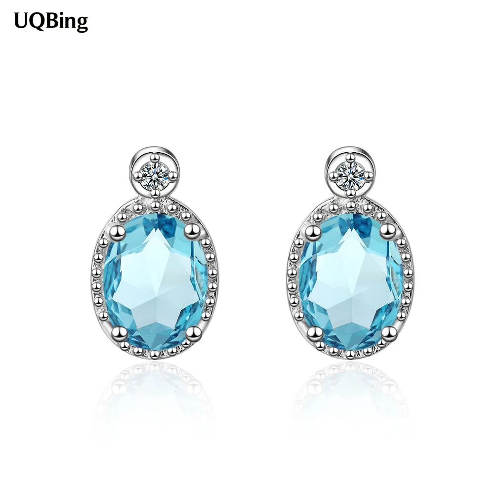 Серебряные цветные овальные круглые хрустальные серьги-гвоздики, подарок для лучших подруг девочек
