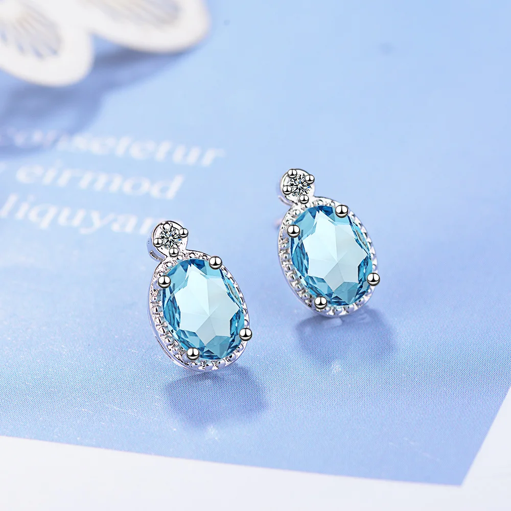 Овальный 1,8 карат Природный Голубой топаз камень серьги-гвоздики и...