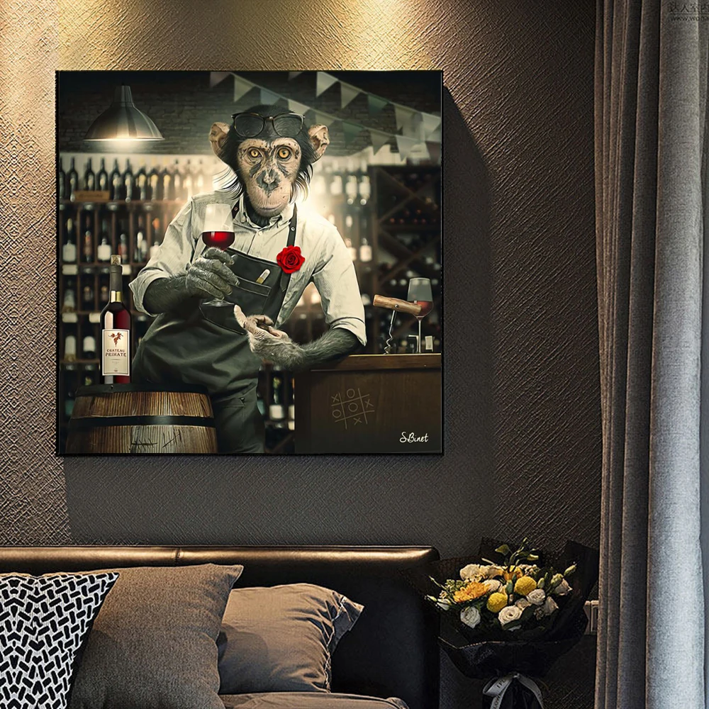 Современная живопись, Настенная картина с изображением постеры с животными, обезьяны, питьевого красного вина в баре, картины для декора комнаты
