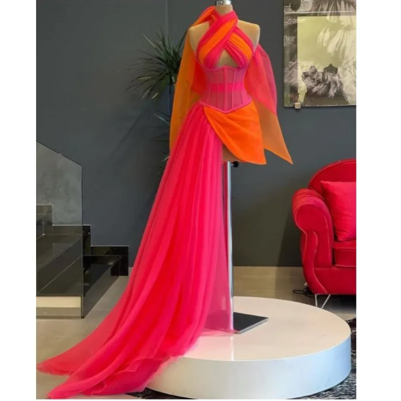 Последние 2021 фуксия Разделение Тюль официальное мероприятие Плать...