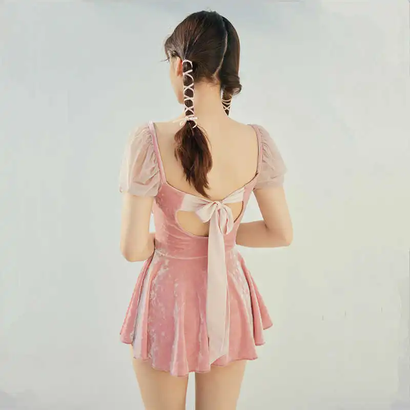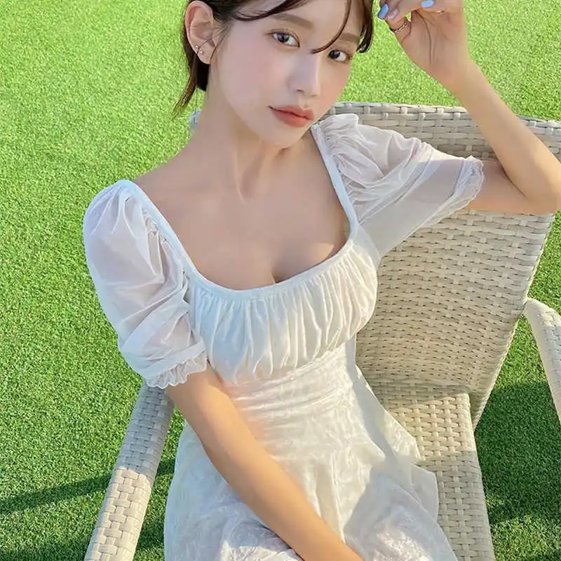 2021 японский и корейский слитный женский купальник с юбкой, французская фея, халтер, сексуальный консервативный весенний купальник с пышными рукавами