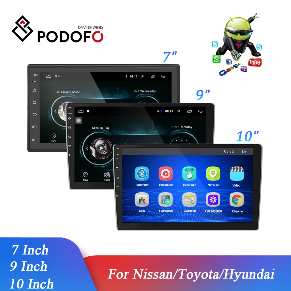 Автомобильный мультимедийный плеер Podofo, MP5-плеер 2,5D на Android, с экраном 10,1 дюйма9 дюймов7 дюймов, GPS, Wi-Fi, Bluetooth, с функцией Mirrorlink, типоразмер 2 din
