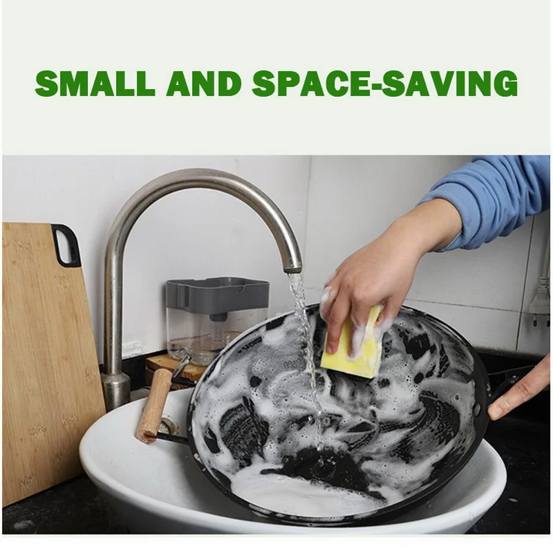 Дозатор мыла с губкой, Ручной пресс, контейнер для жидкости для очистки, Ручной пресс органайзер для мыла, кухонный инструмент #25