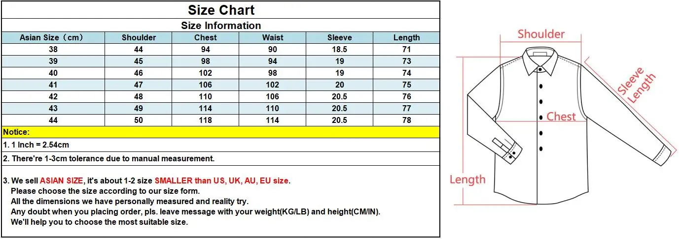 2) Как правило, размер рубашки должен быть больше вашего размера. Вы можете проверить свою обычную рубашку. Если обхват груди 100 см, мы рекомендуем вам выбрать рубашку с ростом 104 или 108 см.