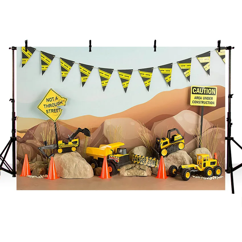 Avezano строительные фоны для дня рождения экскаватор предупреждение мальчик ребенок душ фотография фоны фотостудия декор для фотографирования