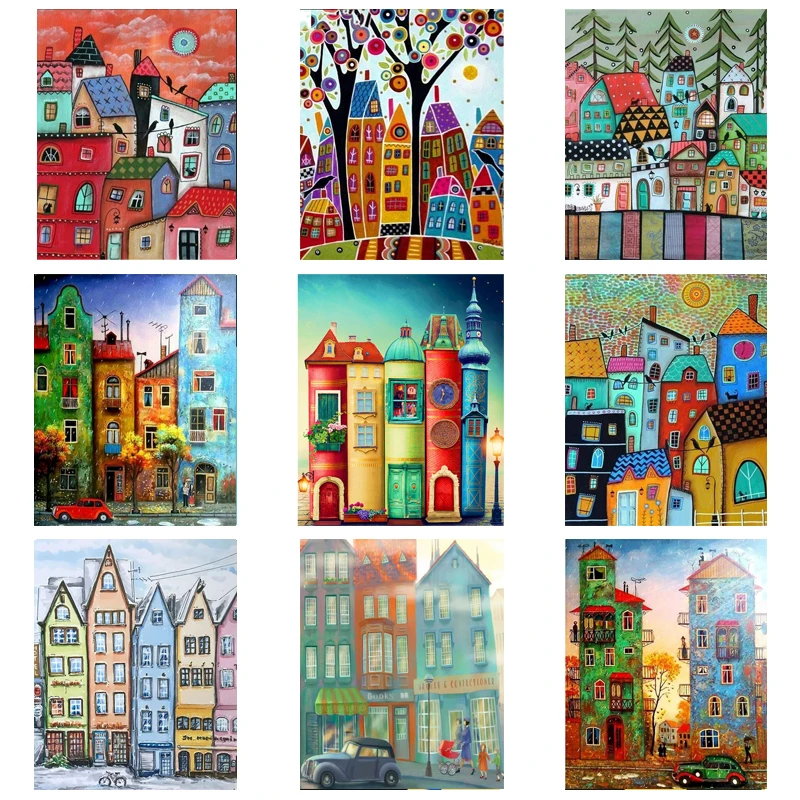 Картина по номерам YIJIE Город из мультфильма, ручная роспись маслом, холст для окрашивания, уникальный подарок, домашний декор