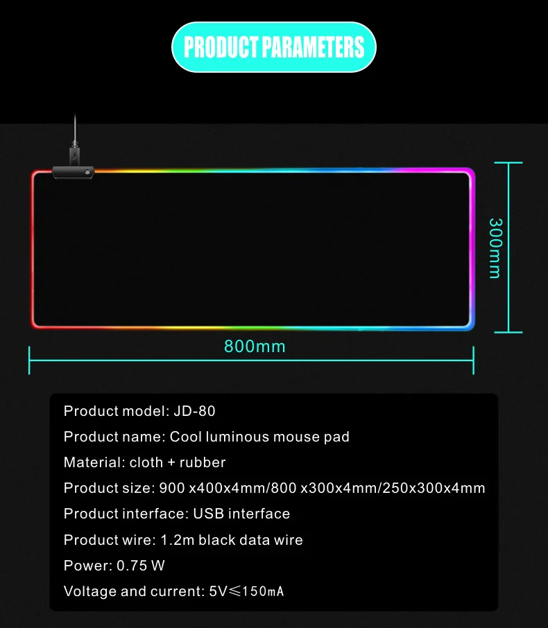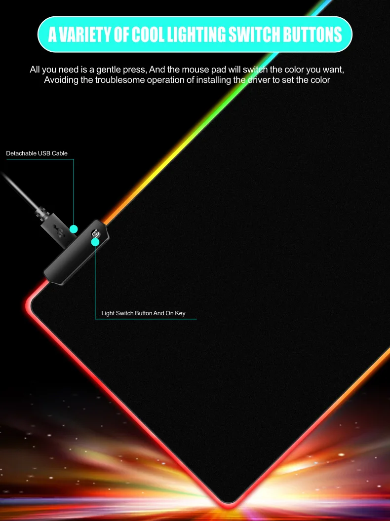 Большой игровой коврик для мыши RGB, коврик для компьютерной мыши, игровой коврик для мыши XXL, большой коврик для мыши, настольный игровой коврик для ПК с подсветкой