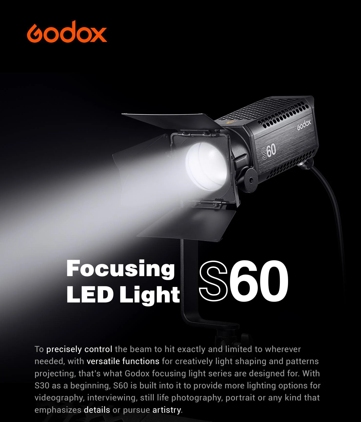 Светодиодный Фокусировочный светильник Godox S60, светодиодная лампа, Точечный светильник для фотостудии, Youtube, Live, PK Godox S30 Aputure