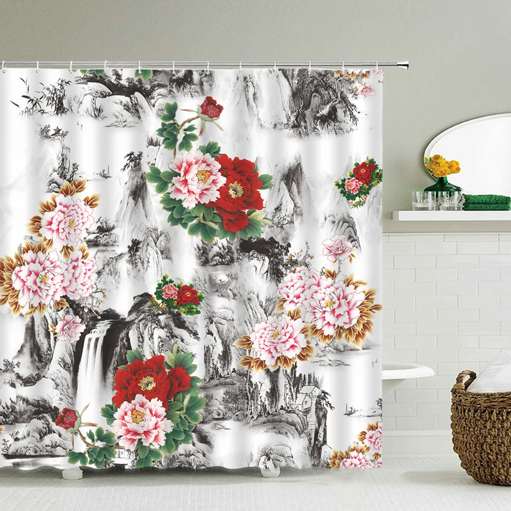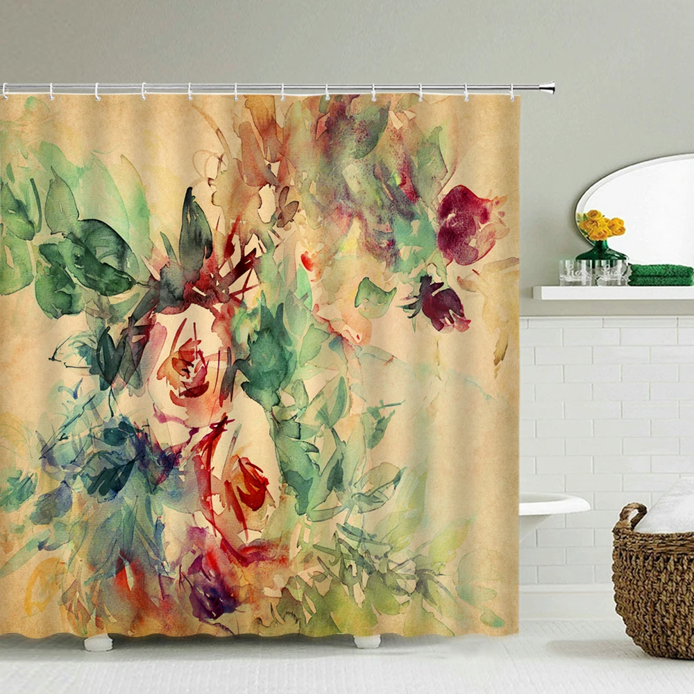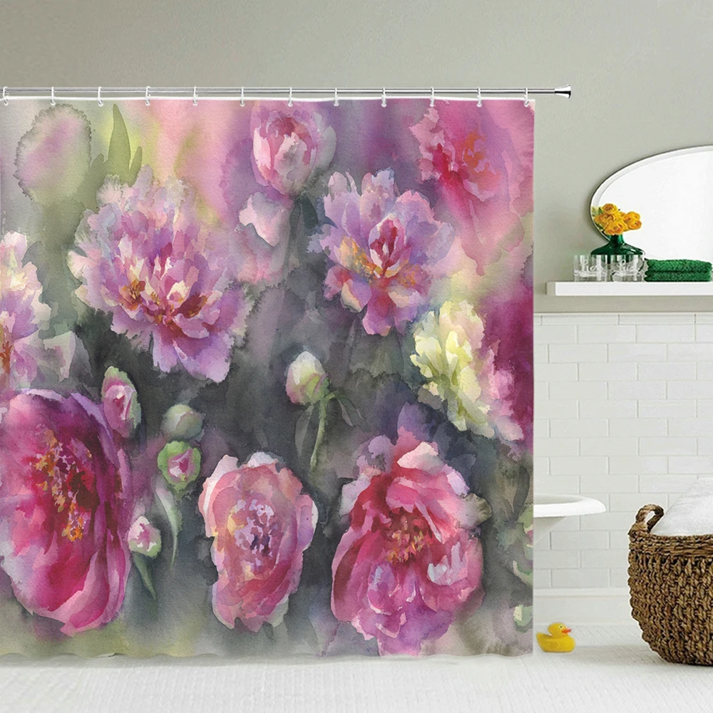 Водонепроницаемые шторы для ванной комнаты, занавески для душа из полиэстера с 3D принтом цветов, экран для ванной, домашний декор