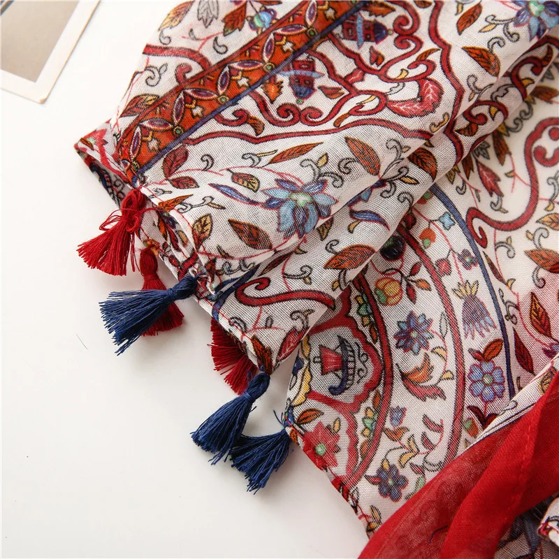 Мода осень женский вискозный шарф в богемном стиле ацтеков с кисточ...