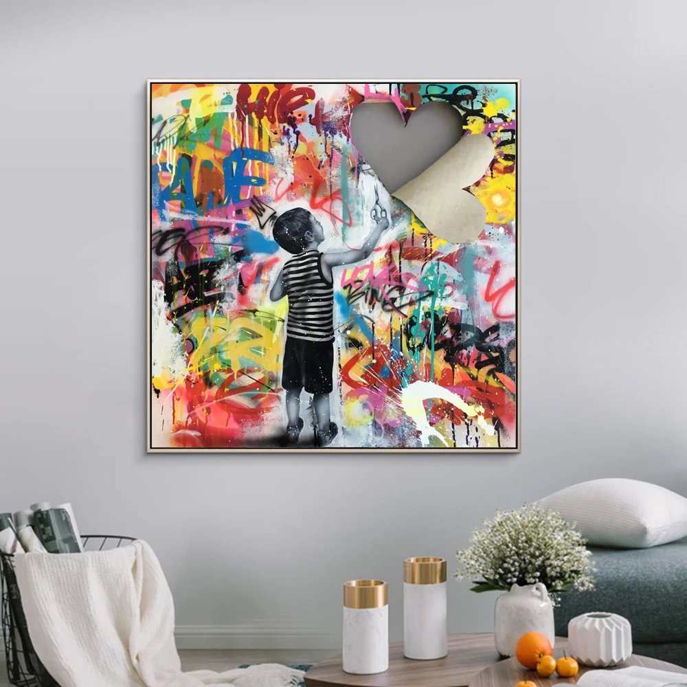 Уличный Griffiti Арт холст Современная Абстрактная живопись Плакаты и принты стен мальчик обрезки любящим изображение для Декор в гостиную