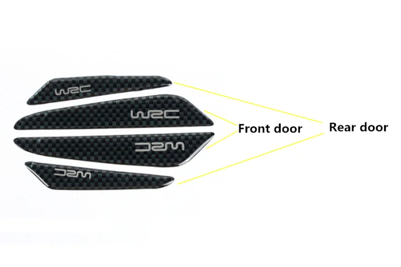 Горячая 4 шт автомобиля дверь потертости стикер WRC дляСпецификация: Состояние на 100% абсолютно новый, высокое качество Материал: натуральное углеродное волокно с импортной мягкой поверхностью из полиуретана Применение: Универсальный подходит для всех транспортных средств Черное глянцевое углеродное волокно Посылка включает: Один комплект (в том числе 4 шт.) автомобиля углеродного волокна протектор бампер наклейки