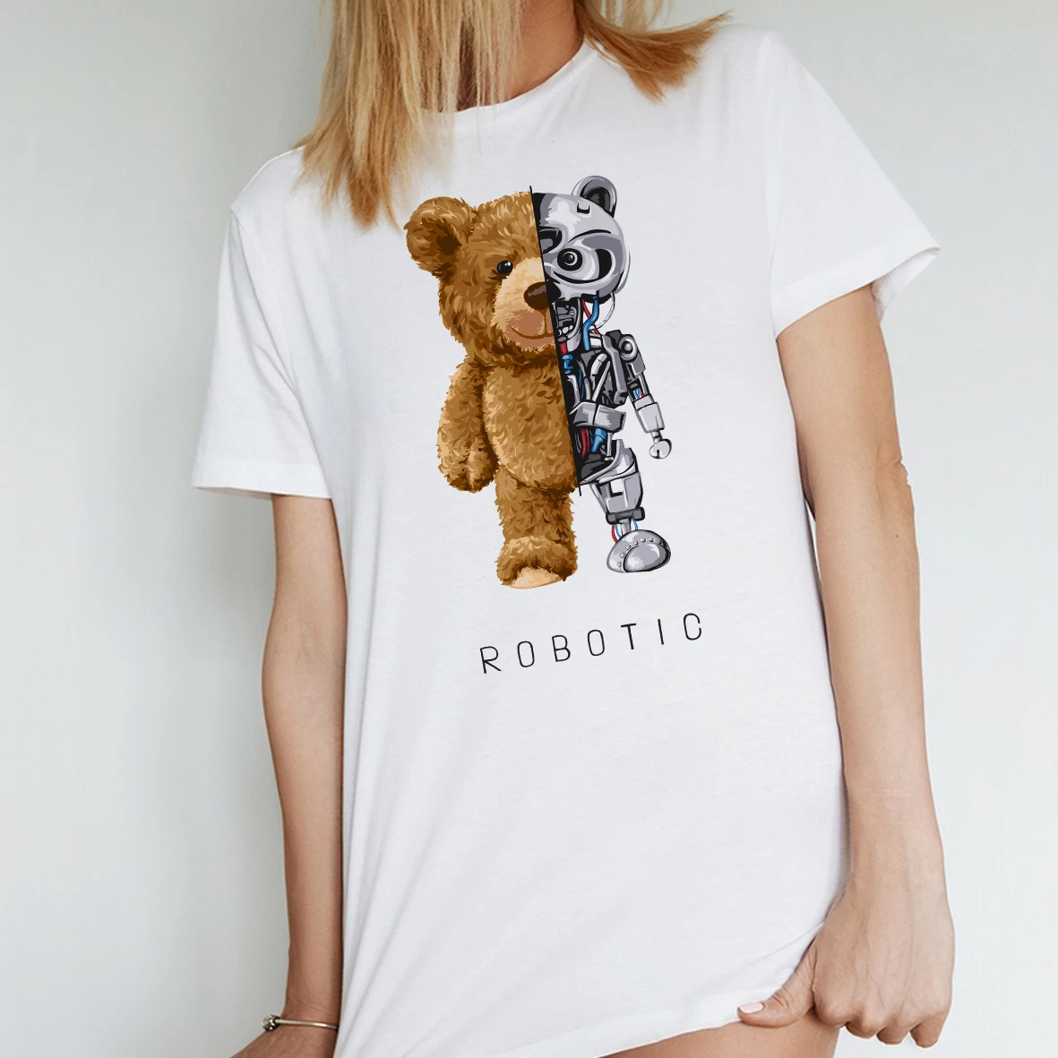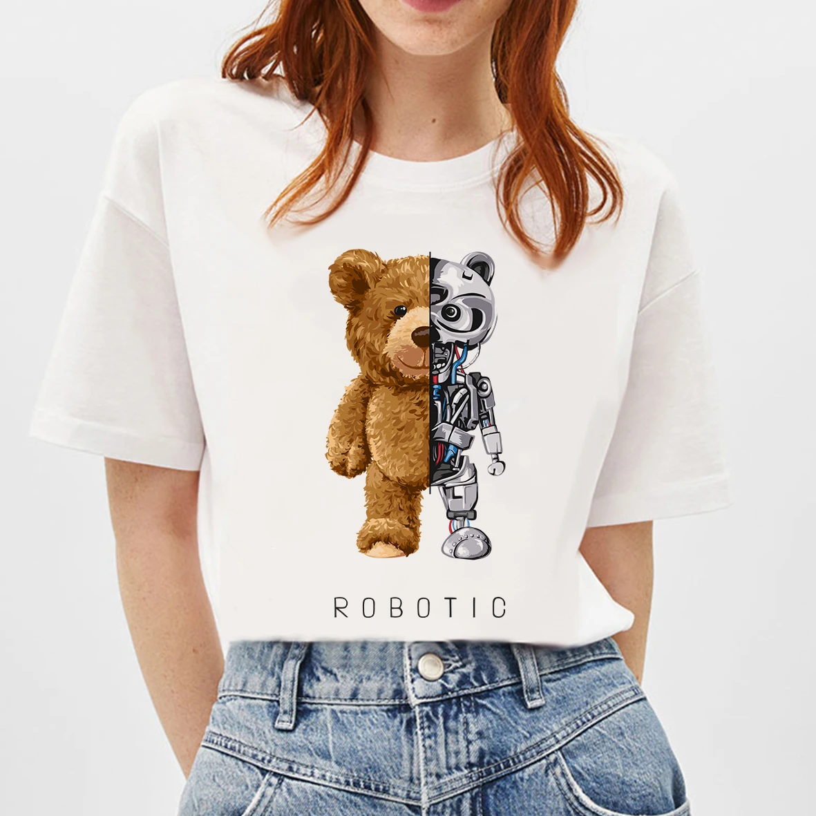Женские футболки BLINGPAW, футболка с роботизированным принтом мишки тедди, женские белые хлопковые футболки, летние женские футболки