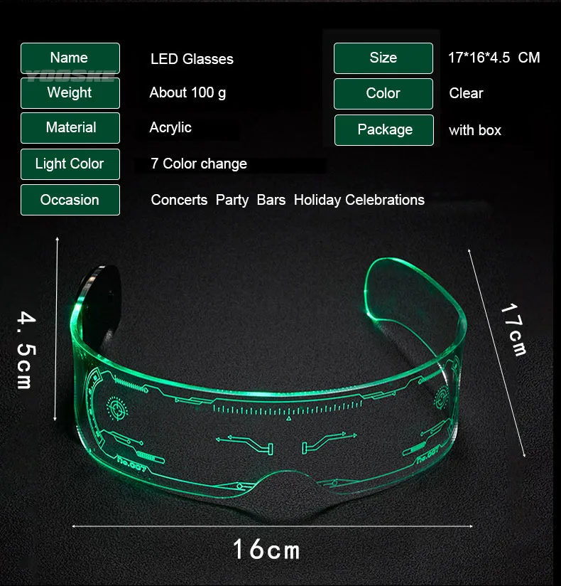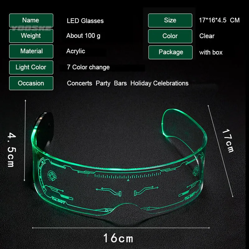 Светодиодные очки YOOSKE, женские модные светящиеся солнцезащитные очки для вечеринок в стиле панк, мужские цветные декоративные очки с светильник кой, очки, оттенки