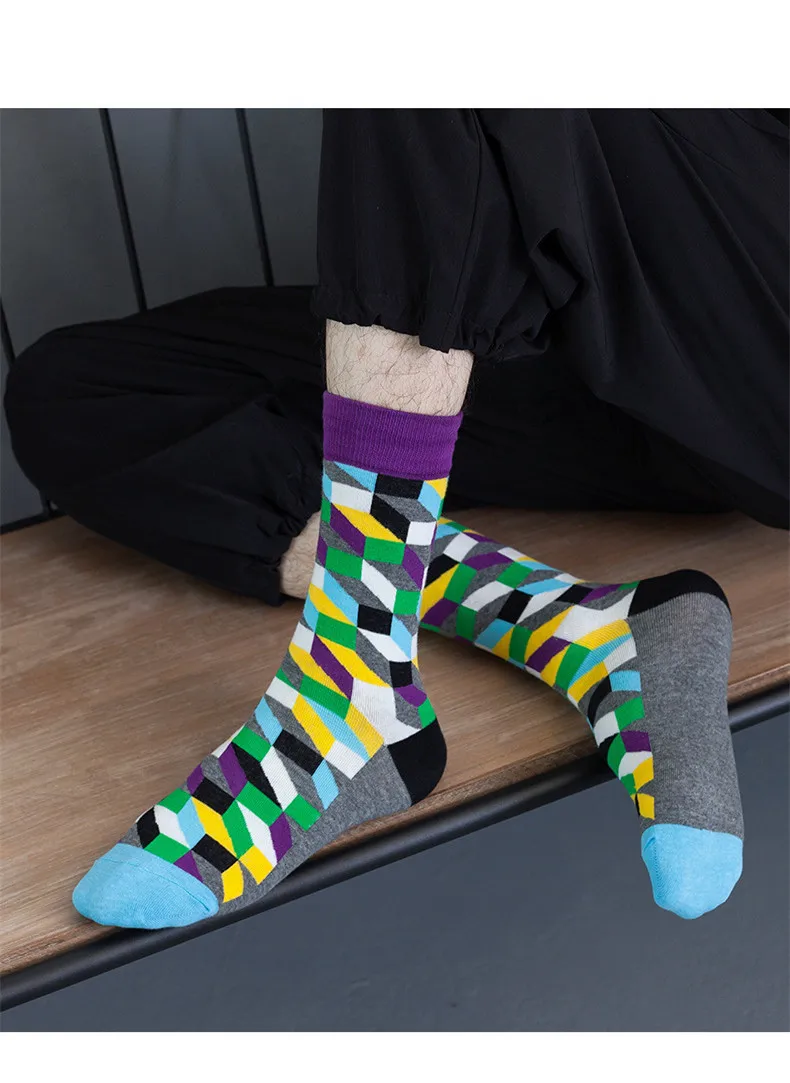 Носки мужские хлопковые до колена, весна-лето носки с градиентными цветами г., 1 пара