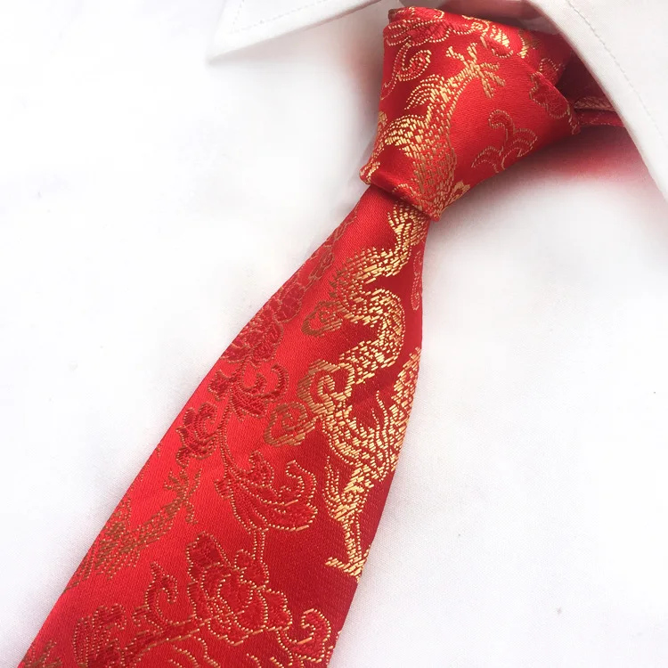 Галстук жениха с драконом, праздничный галстук из парчовой ткани, с узором китайского дракона, красный, черный, винный, розовый, коричневый