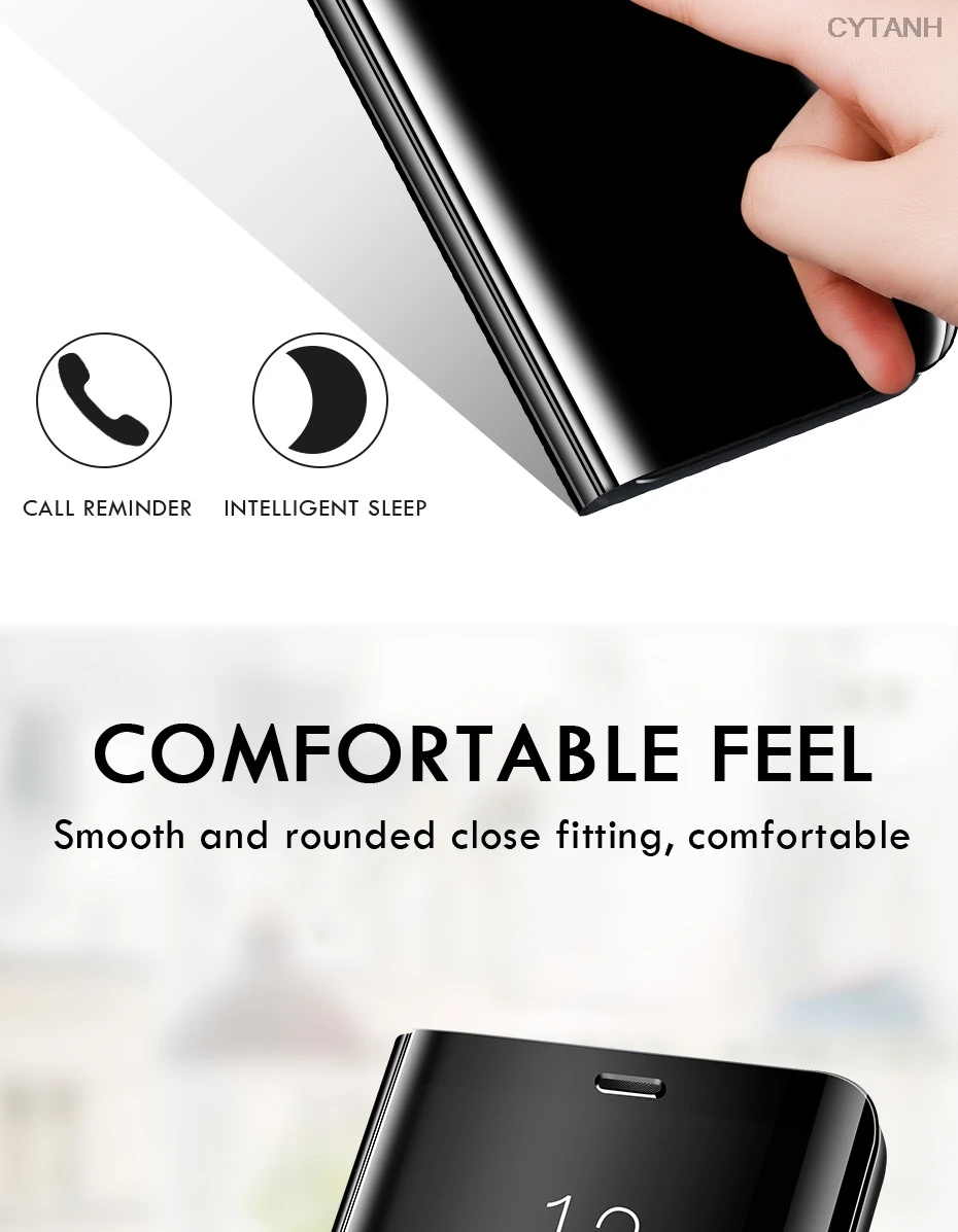 Features 1Smart mirror leathe flip cover, quickly view SMS, Call, date, time,
