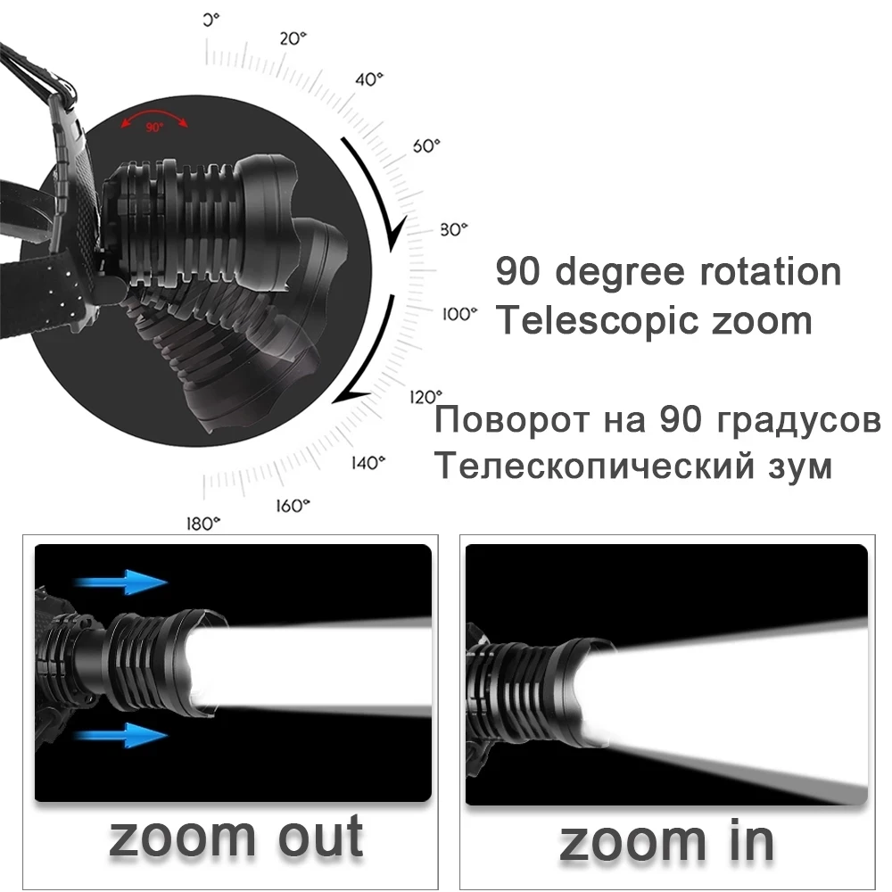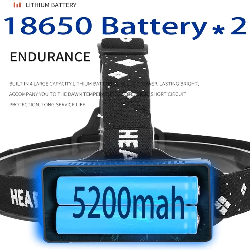 Налобный фонарь, 1000000 лм, с ИК-датчиком, мощный налобный фонарь XHP199, перезаряжаемый через Usb, налобный фонарь XHP90.2, 18650