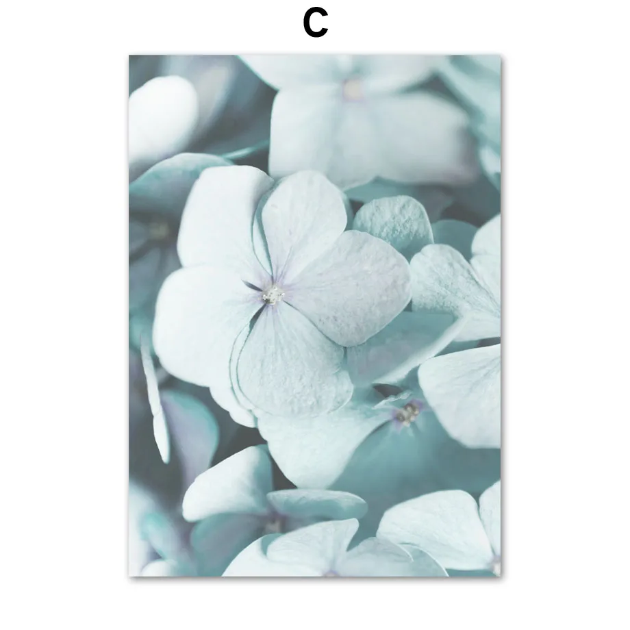 Плакат с голубыми цветами акварелью, Скандинавская Абстрактная Карт...