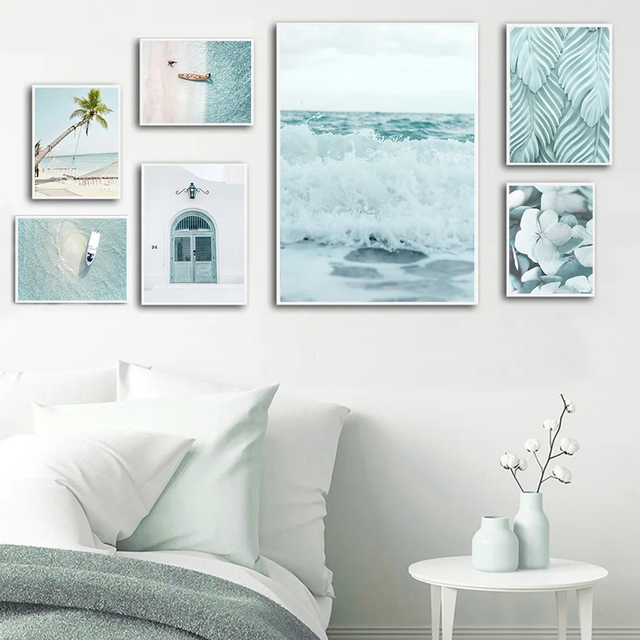 Пляж пальмы мост ландшафт с морскими волнами Wall Art холст картины...
