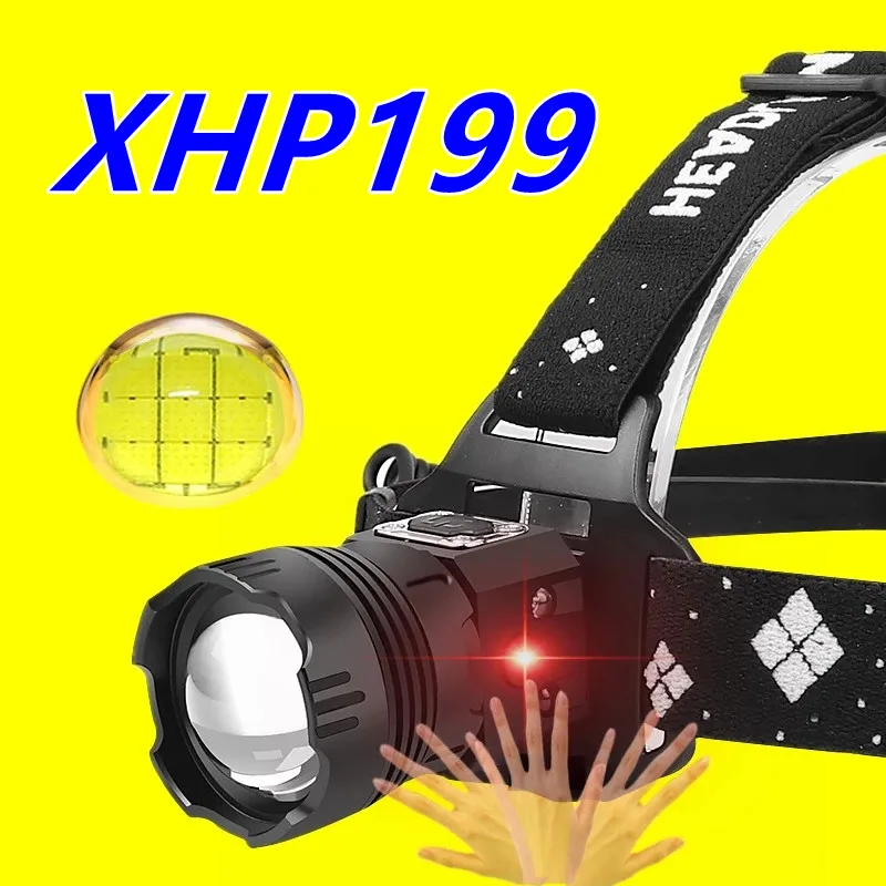 Самый мощный налобный фонарь XHP199, XHP110, фонарь с USB-подсветильник, перезаряжаемый головсветильник фонарь с аккумулятором 5200 мАч, светильник дукционный Головной фонарь, 400000 люмен