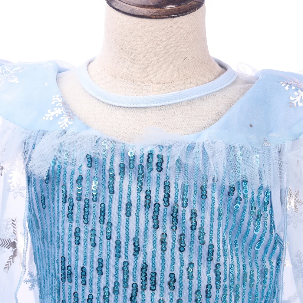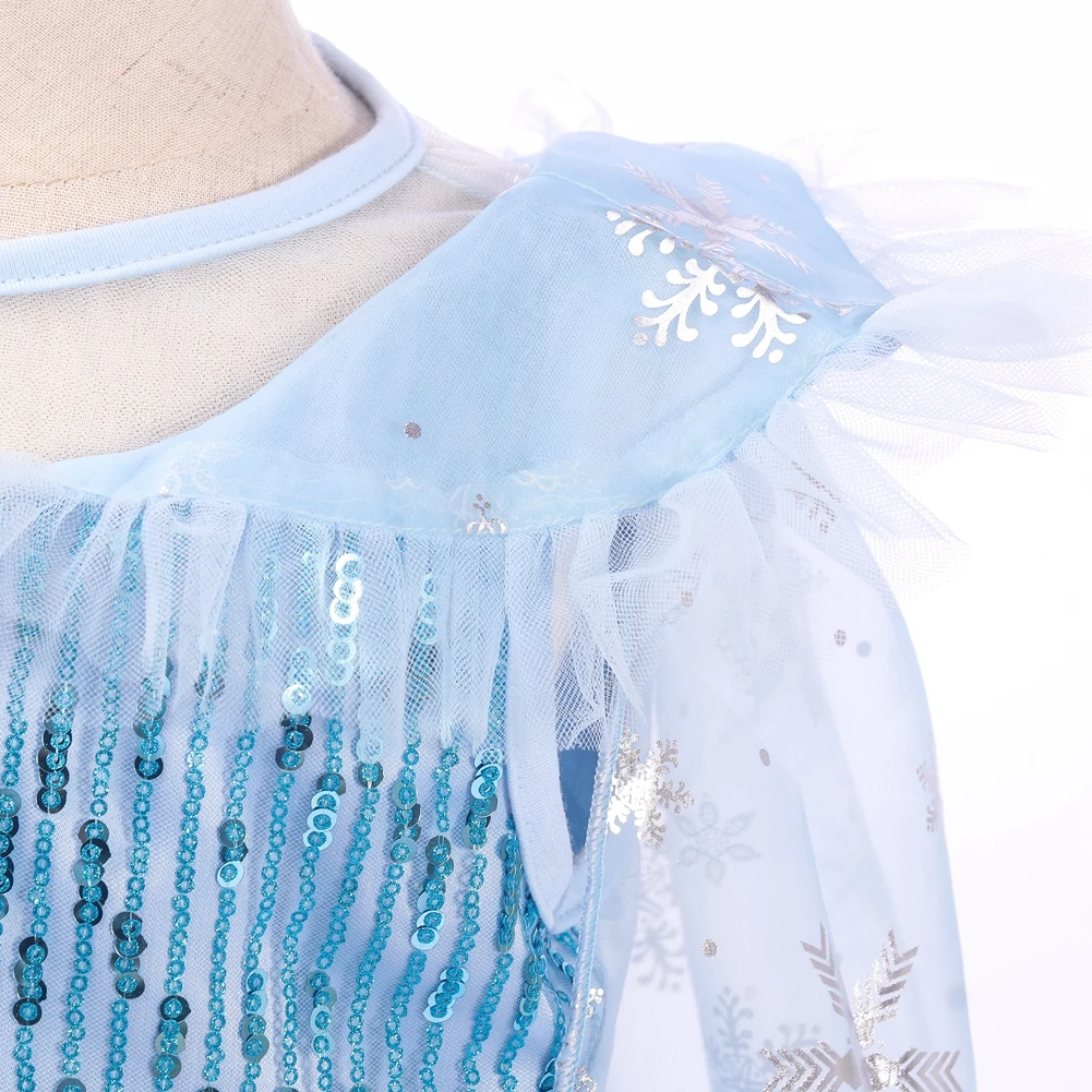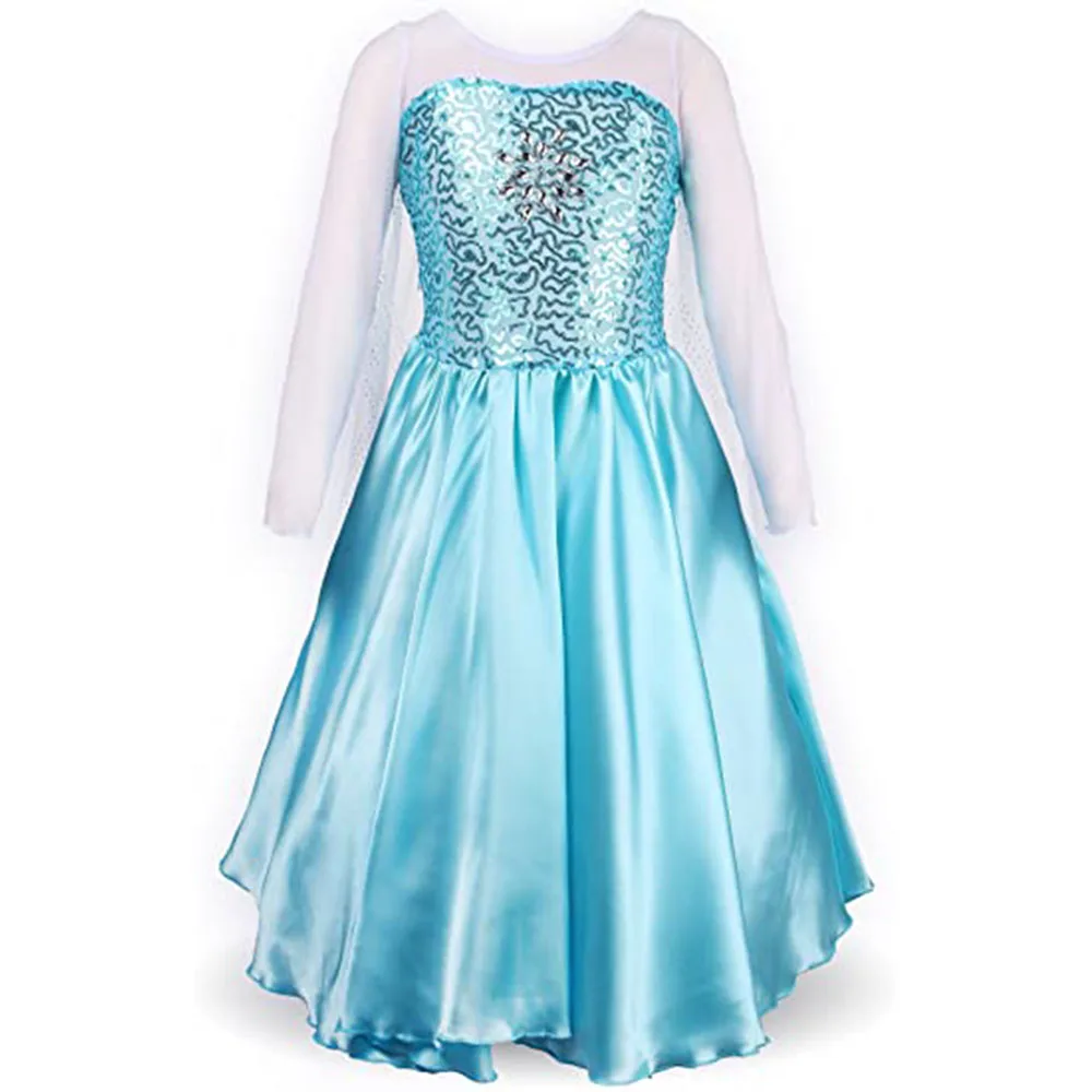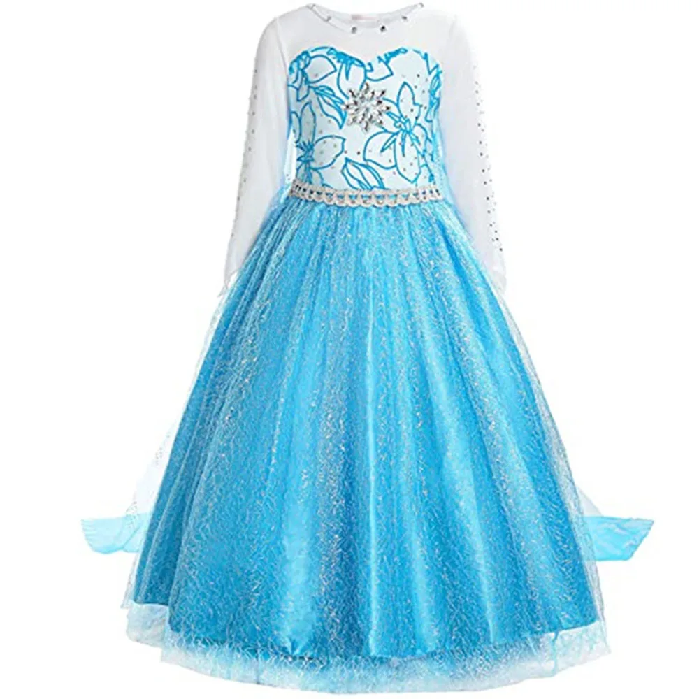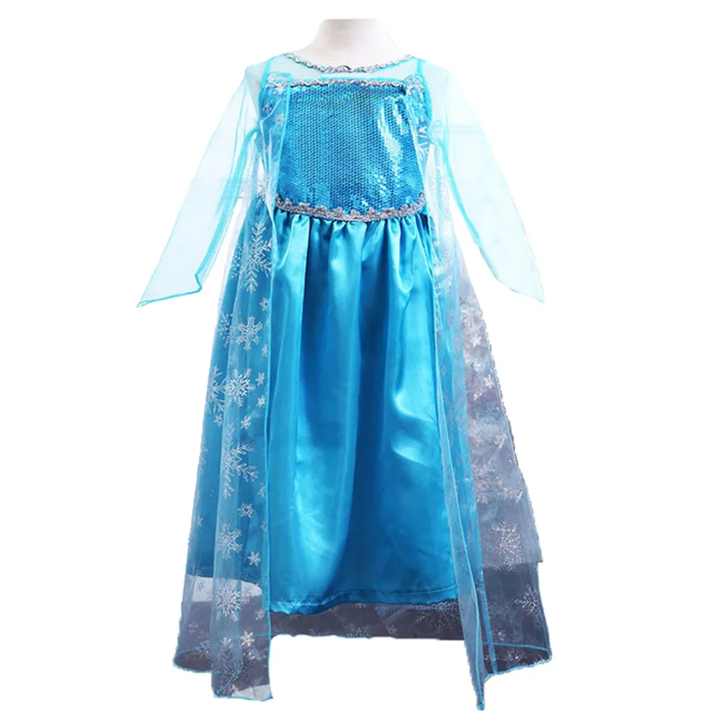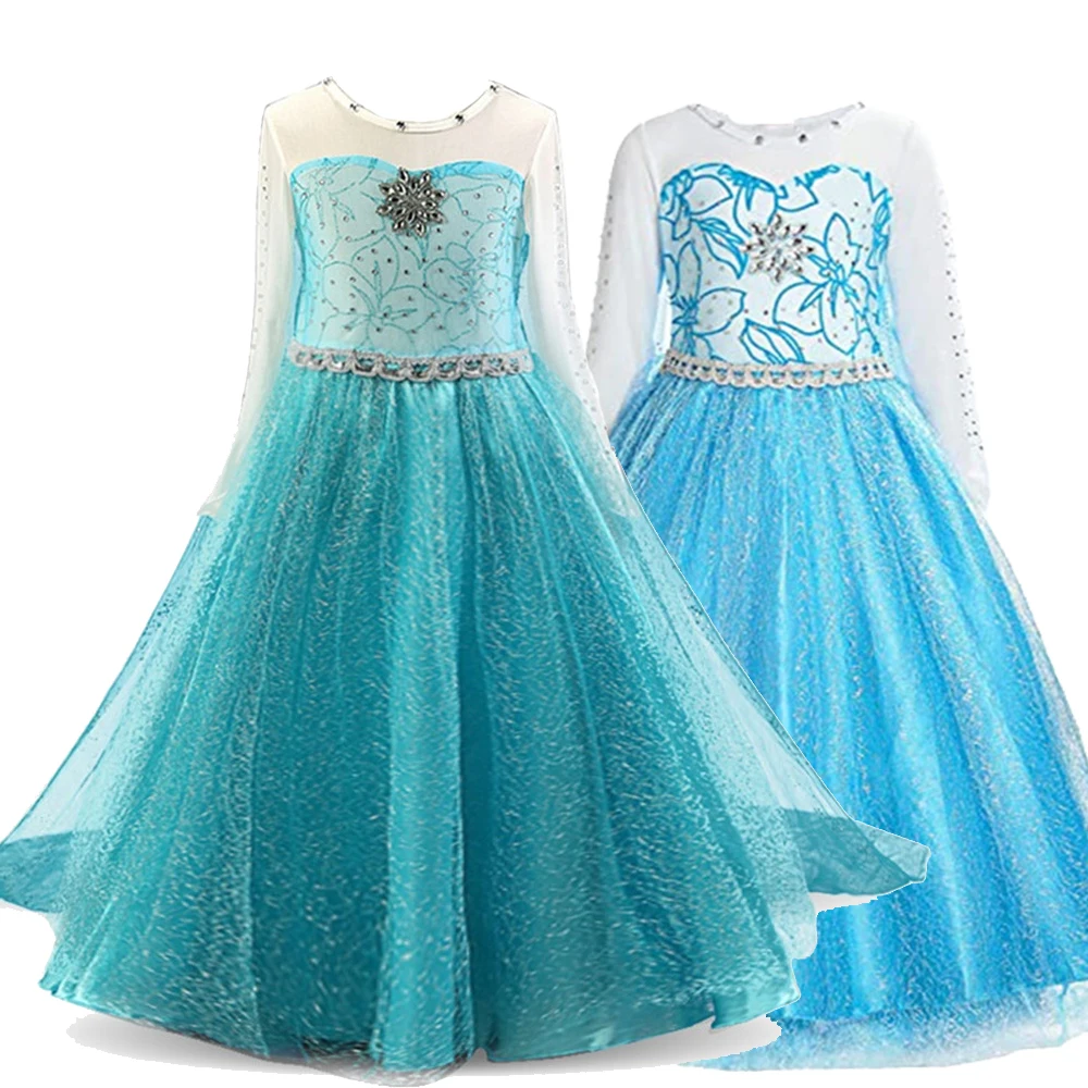 Платье принцессы Эльзы Снежной королевы детские платья с длинным ру...