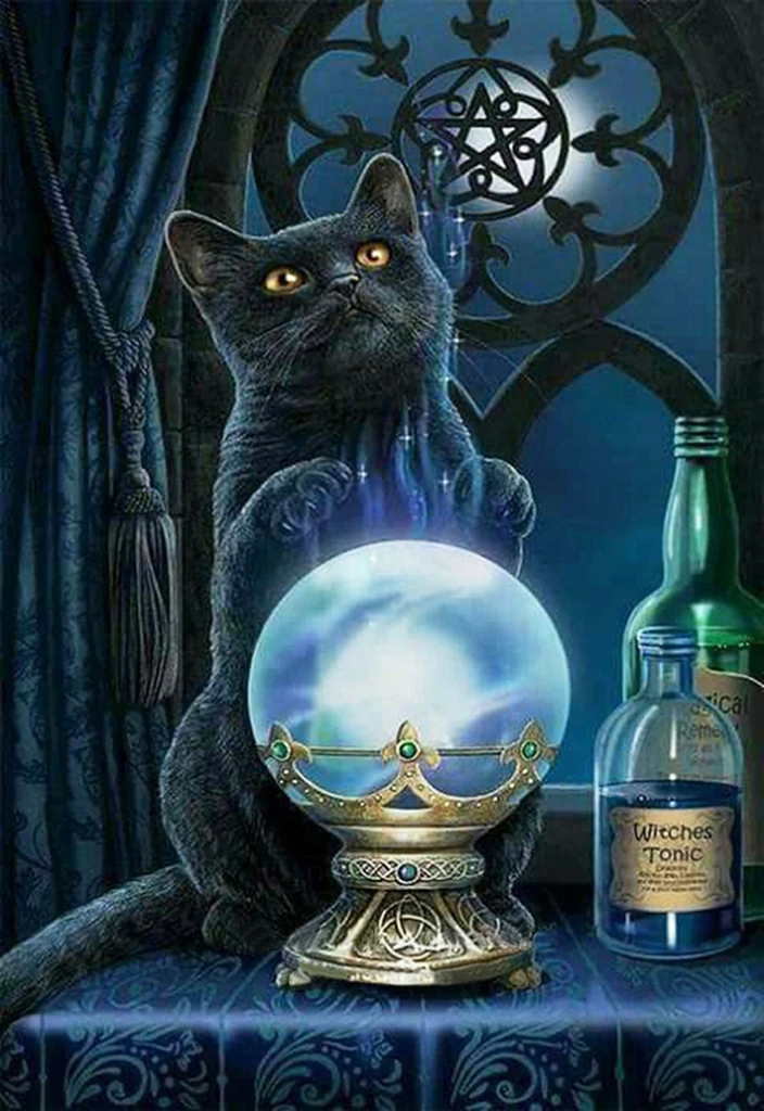 Набор для алмазной живописи 5D Ведьма и Черный кот