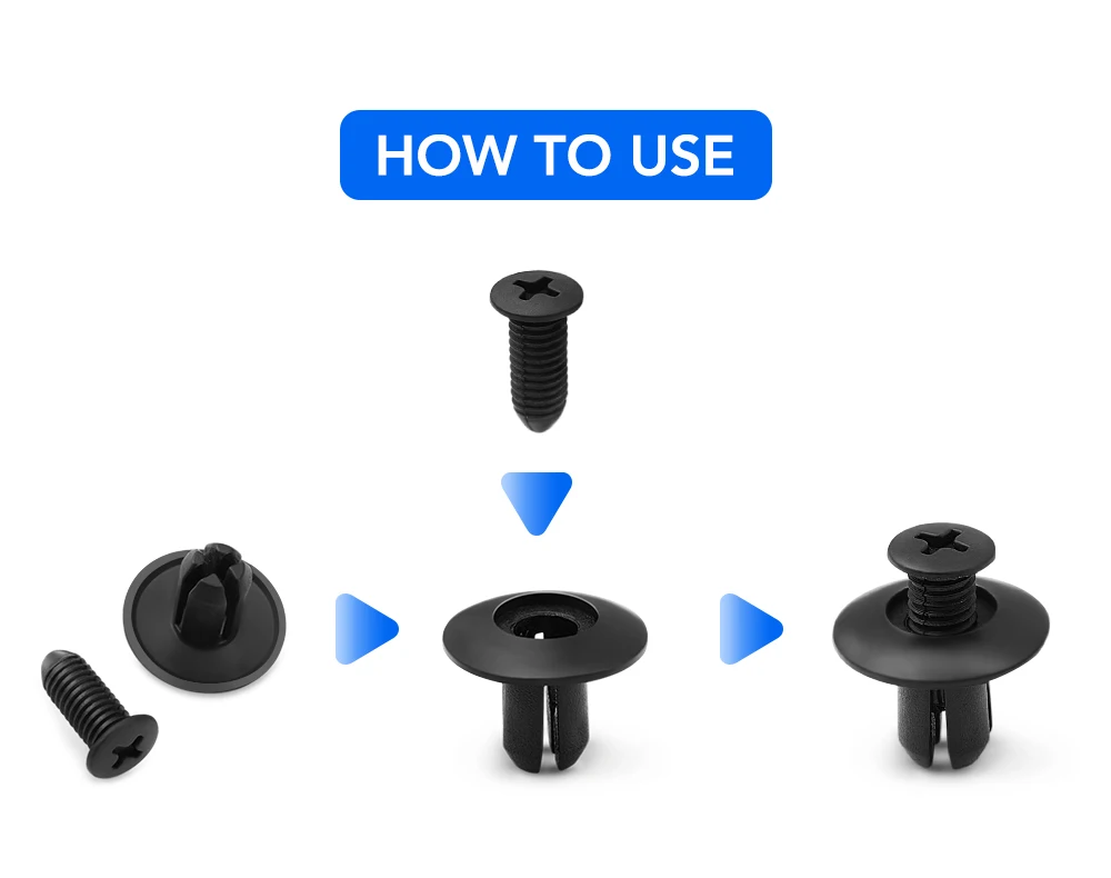 Эти заклепки изготовлены из пластикового материала, подходят для отверстия диаметром 8 мм.